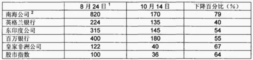 英国南海泡沫中主要公司市值变化: