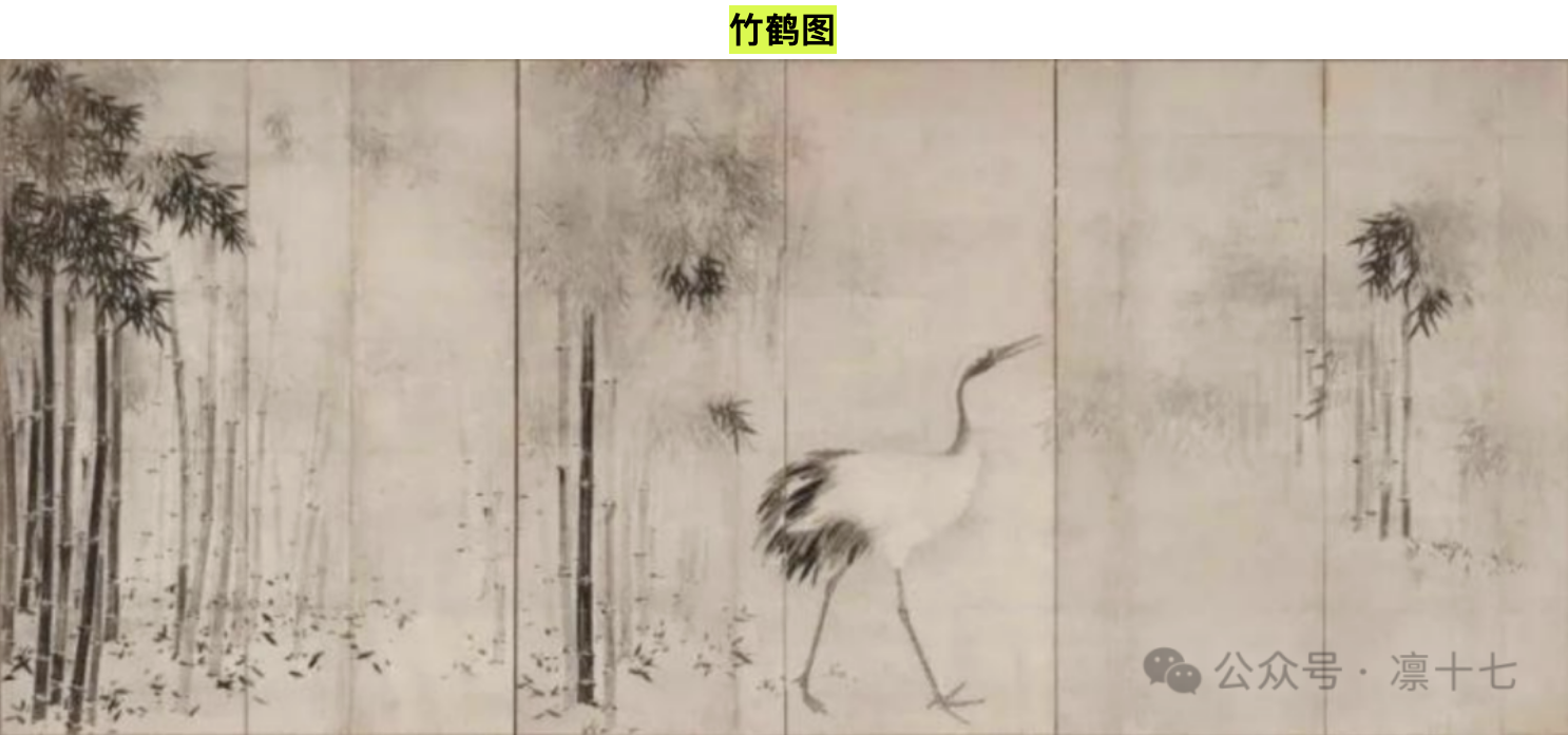 00:37:27:展品七「竹鹤图」——晚年名垂青史的长谷川等伯,作品里仍有浓浓的南宋痕迹(注:音频口误松鹤图,实为竹鹤图)