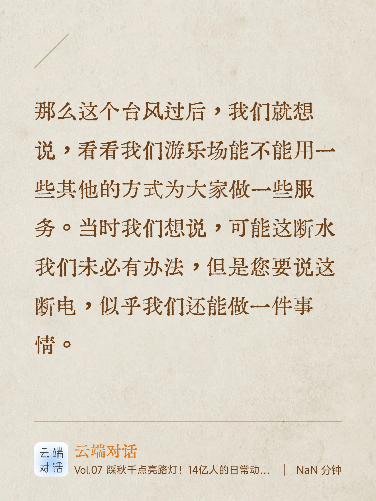 这一切始于一场17级摩羯台风之后的回访,我们原以为水电中断后,大家最关心的是电力,但大家问的第一个问题却是:“我们一起搭建的游乐园,什么时候可以继续玩?”