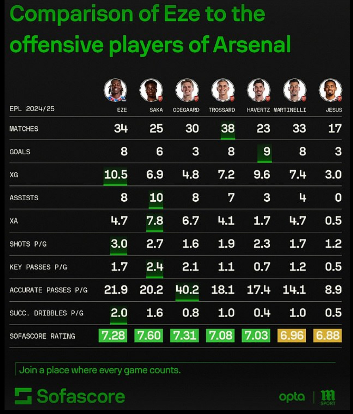 01:00:56:艾泽的进攻能力:对比萨卡和厄德高的数据表现