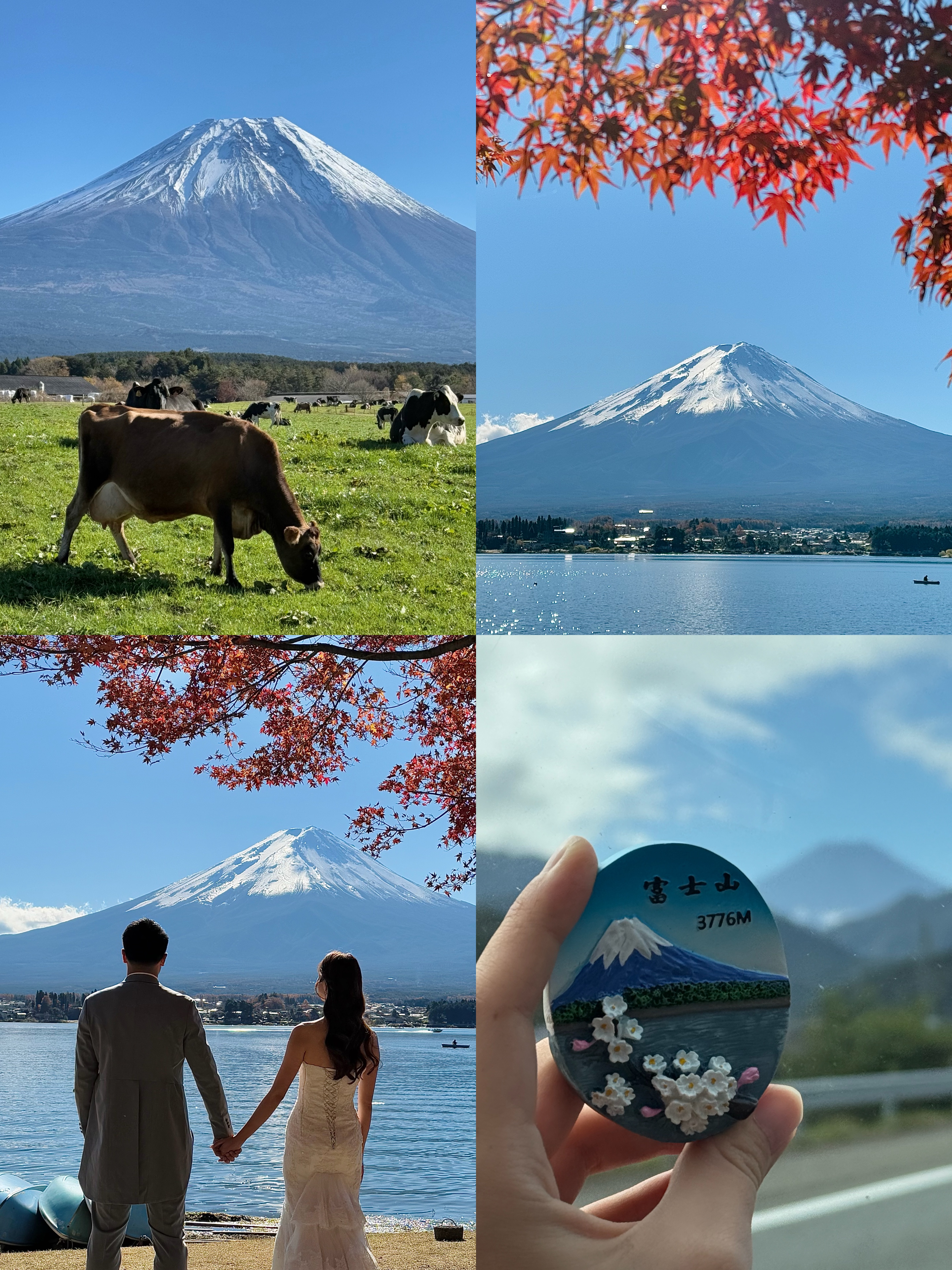 富士山下的牛马 & 河口湖另一边的风景 & 拍婚纱照的情侣:
