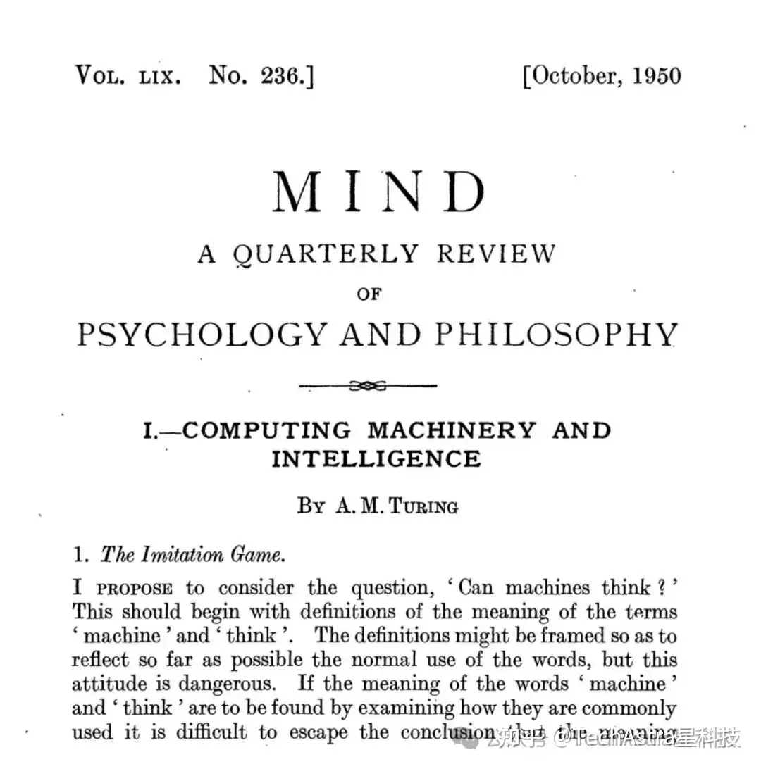 1950年,他在哲学期刊《心》(Mind)上发表了另外一篇具有里程碑意义的论文——《计算机器与智能》(Computing Machinery and Intelligence)。在这篇论文里,他直面了那个终极的问题:“机器能思考吗?” (Can machines think?)