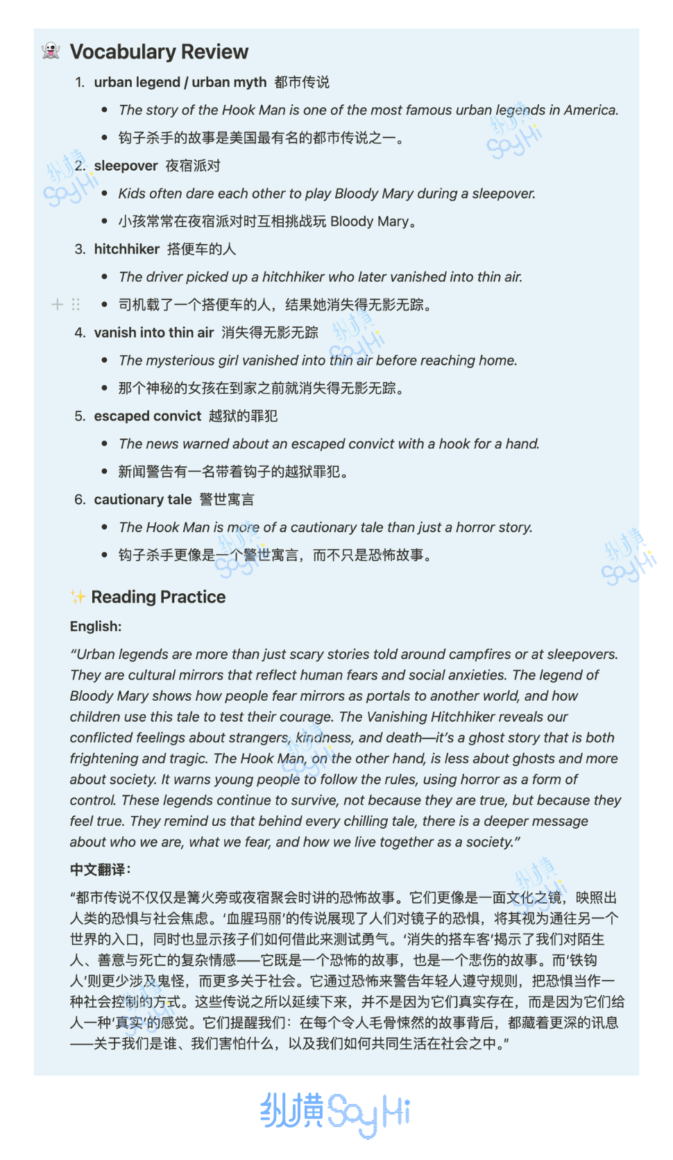 我们今天要聊到的是 urban legends,也就是都市传说。在英文里,也有人叫它 urban myths。这些故事通常没有确切的来源,往往是从"朋友的朋友听来的"——a friend of a friend told me。