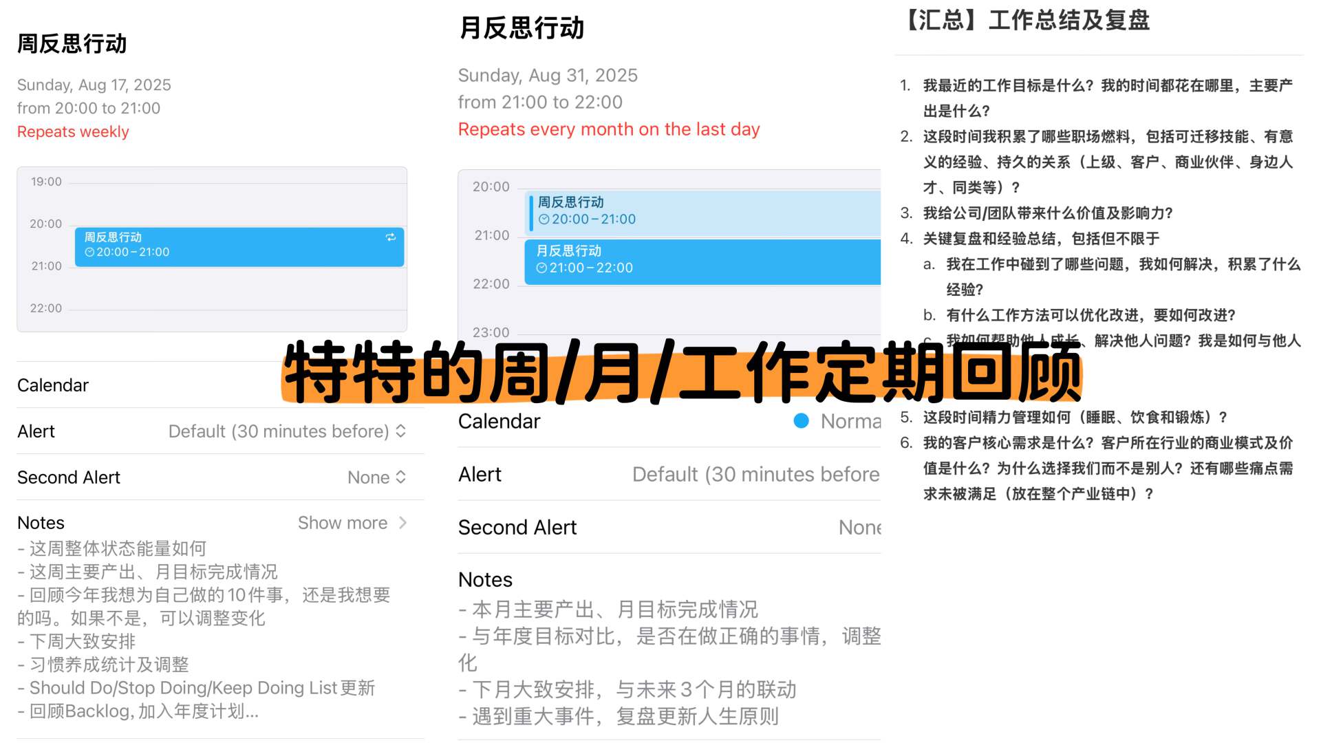 - 节目里白白说放Shownotes的【特特的周/月/工作定期回顾】示意图,见笑啦~