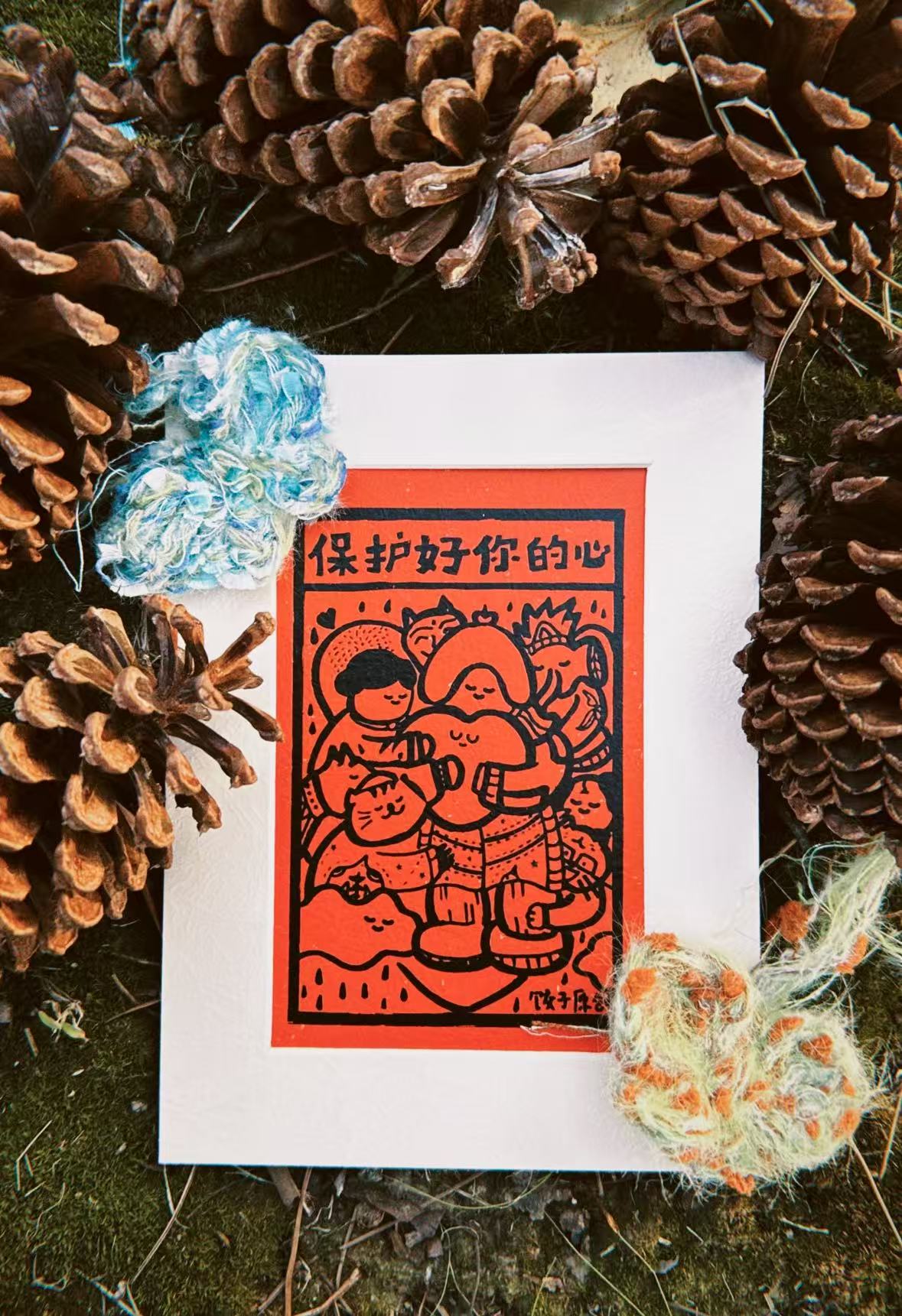 饺子的文创版画:《肠胃强健之神》 与 《保护好你的心》
