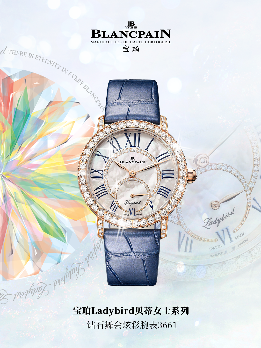 宝珀Ladybird贝蒂女士系列,专为女性创作的高级女士机械腕表,彰显“独立、浪漫、智慧与高贵“的女性精神与闪耀时光。