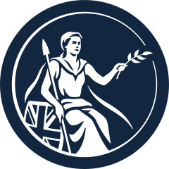 英格兰银行印章。英格兰银行是英国的中央银行,成立于1694年,负责制定货币政策、监管金融机构及处理政府债券。