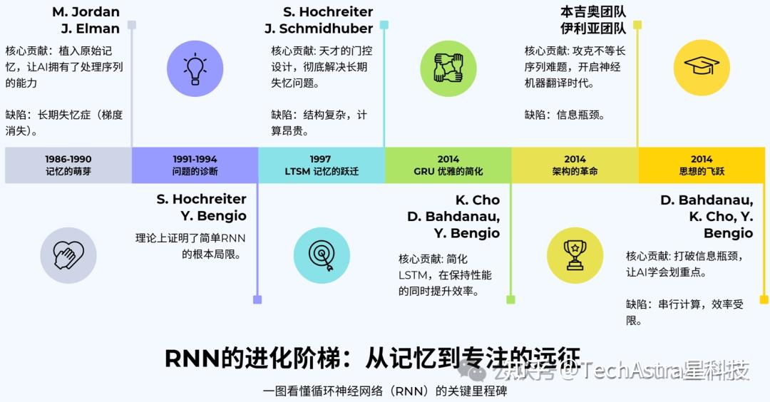 - 第四章:聚焦于循环神经网络(RNN)。 我们将探讨AI研究者们如何通过精巧的结构设计,让机器拥有了处理序列数据的能力,也就是赋予了机器初步的记忆功能。