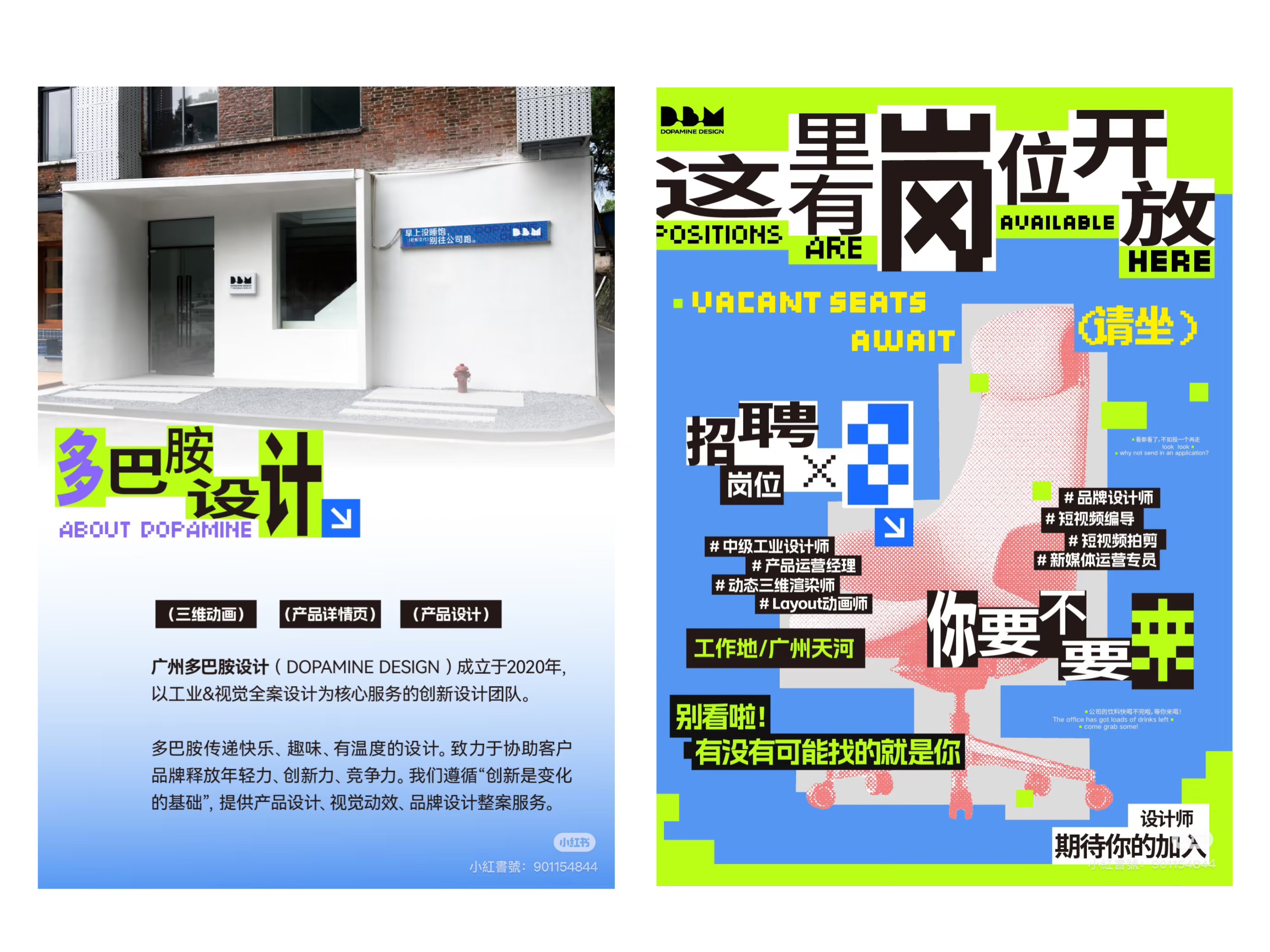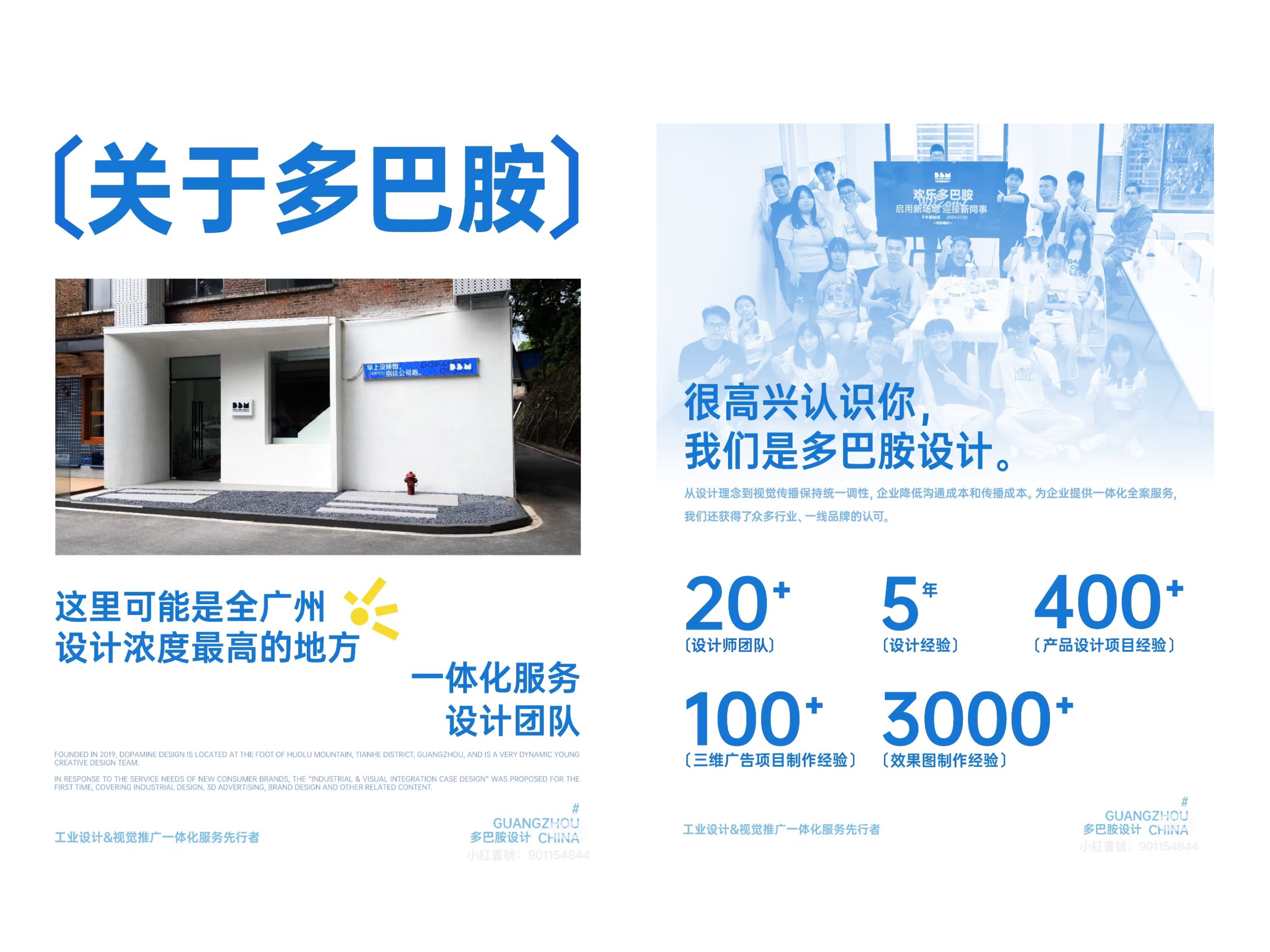 - 关于多巴胺:广州多巴胺设计(DOPAMINE DESIGN),成立于2020年,是以工业和视觉全案设计为核心服务的创新设计团队。旗下业务板块以产品设计、三维动画、视觉推广、品牌设计为主,是一家快乐与专业,尊重与成长并存的神仙设计公司。