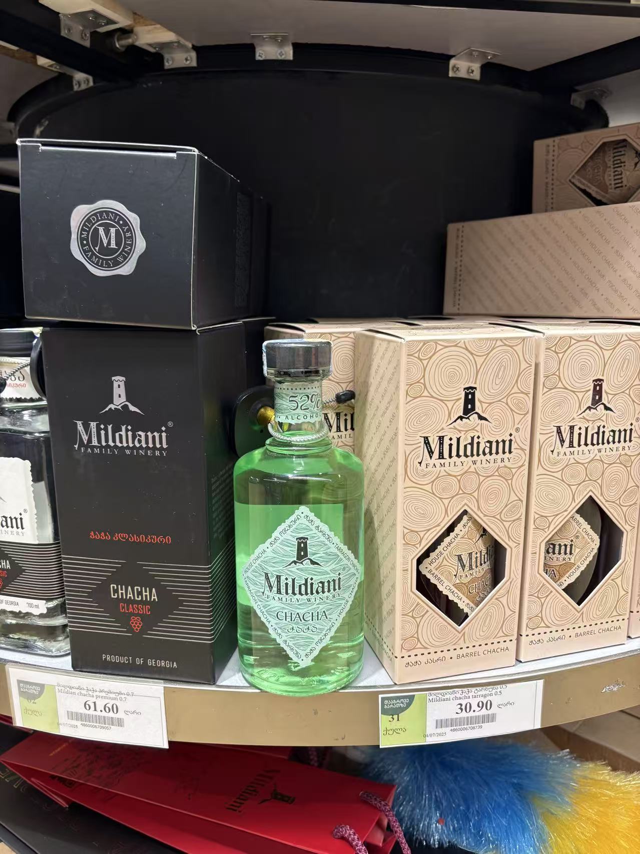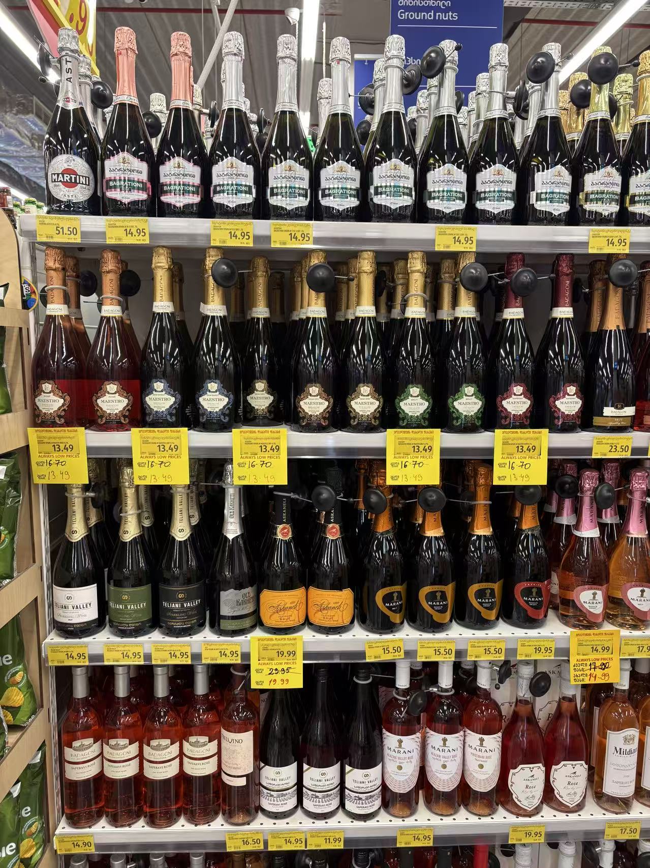【格鲁吉亚超市里的葡萄酒及气泡酒的价格】