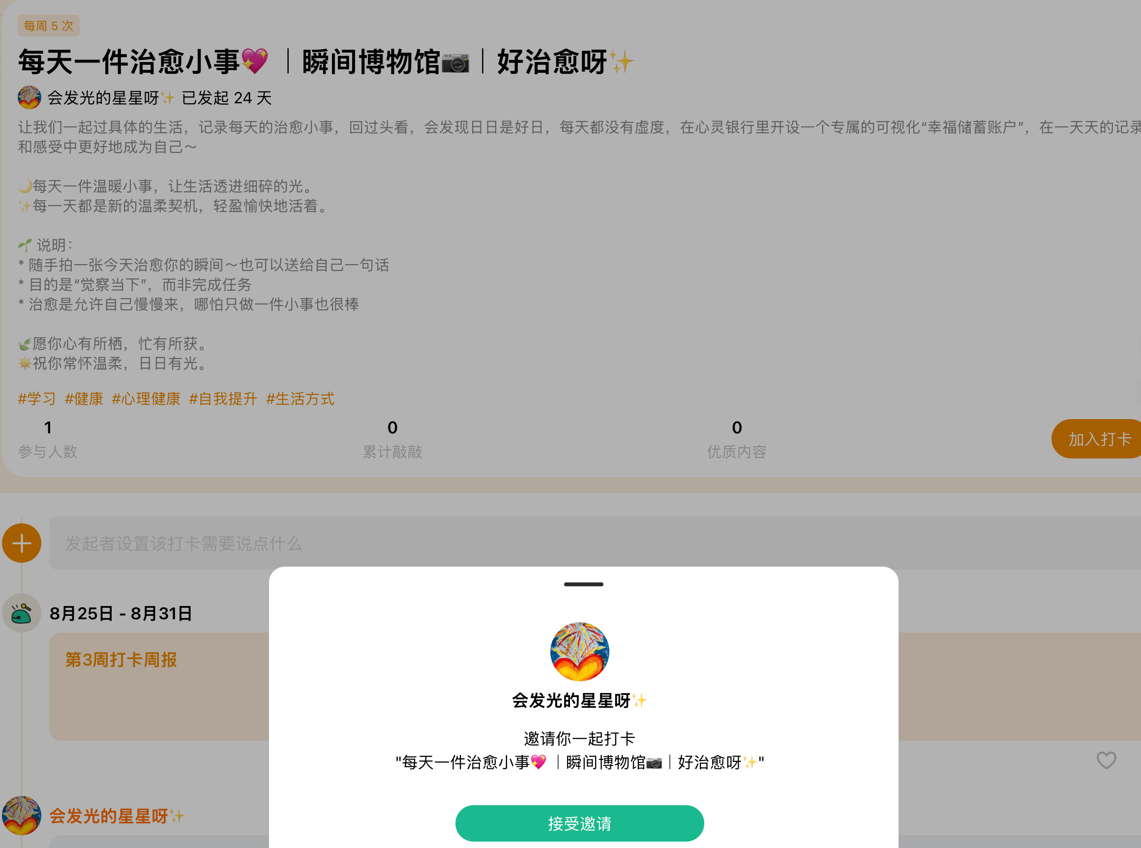 👉点击这里跳转链接,接受邀请就能直接进打卡小组啦~