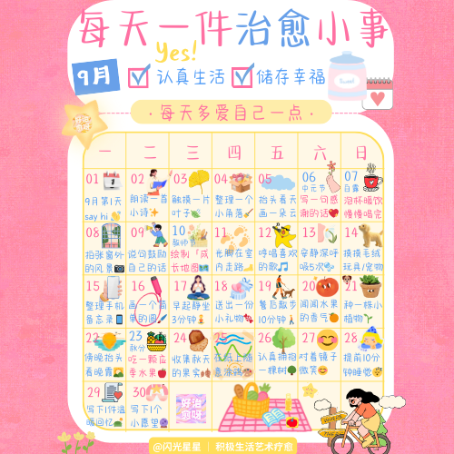 备选方式:请加微信 Star0730kk(进专属打卡陪伴群 🎁9/10月打卡最多的前三名伙伴免费参加【三件治愈人心的小事】线上绘画疗愈工作坊,其他参与打卡伙伴也享88折优惠~