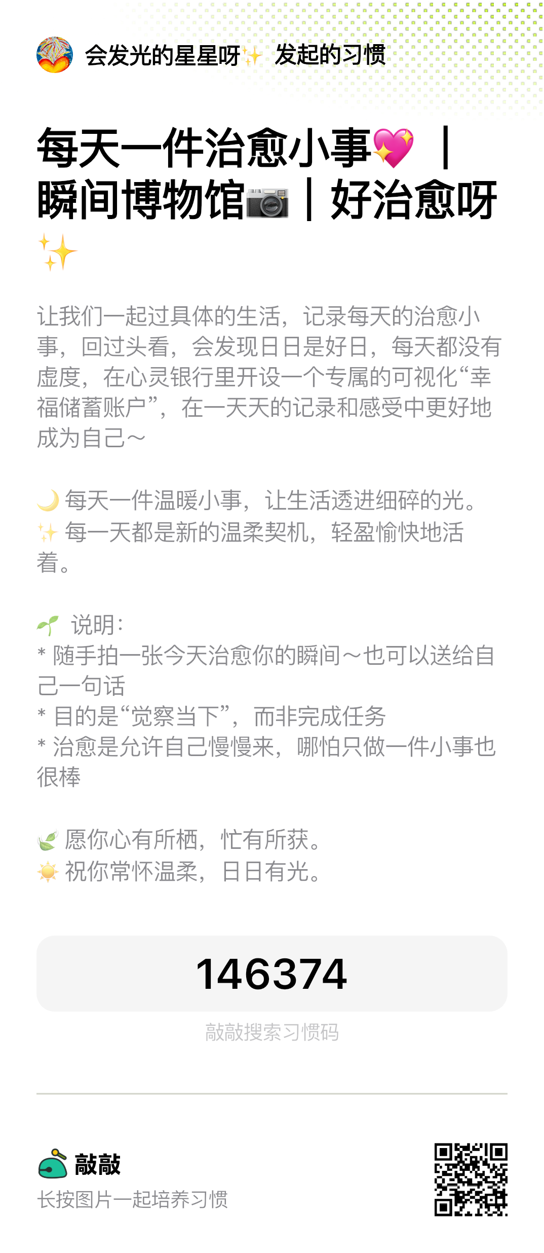 期待在敲敲app的「每天一件治愈小事」打卡小组里面见到大家~