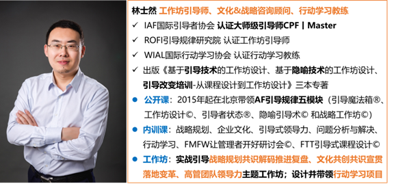 09:32 老林谈第三空间成为引导产生影响,可能会产生长远的影响,尤其在长期合作的客户群体中影响客户的工作方式。引导者如何定义工作坊的成功也举足轻重。
