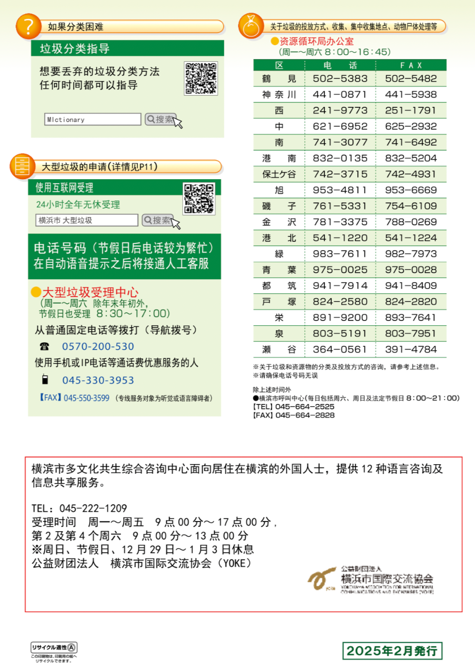 横滨垃圾和资源分类方法手册👇🏻