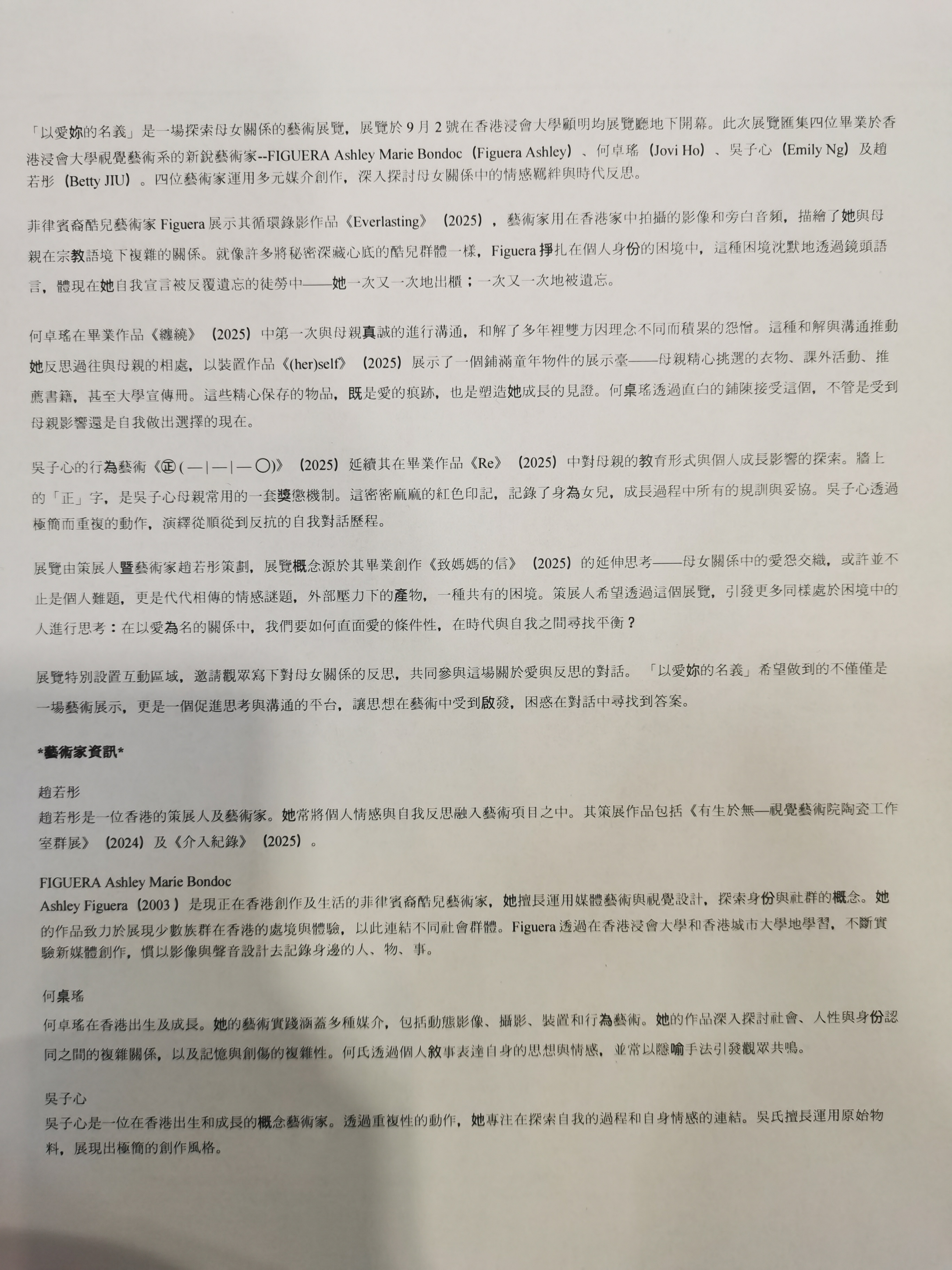 几天前刚刚看了一个名为“以爱你的名义”的展,聚焦母女关系。