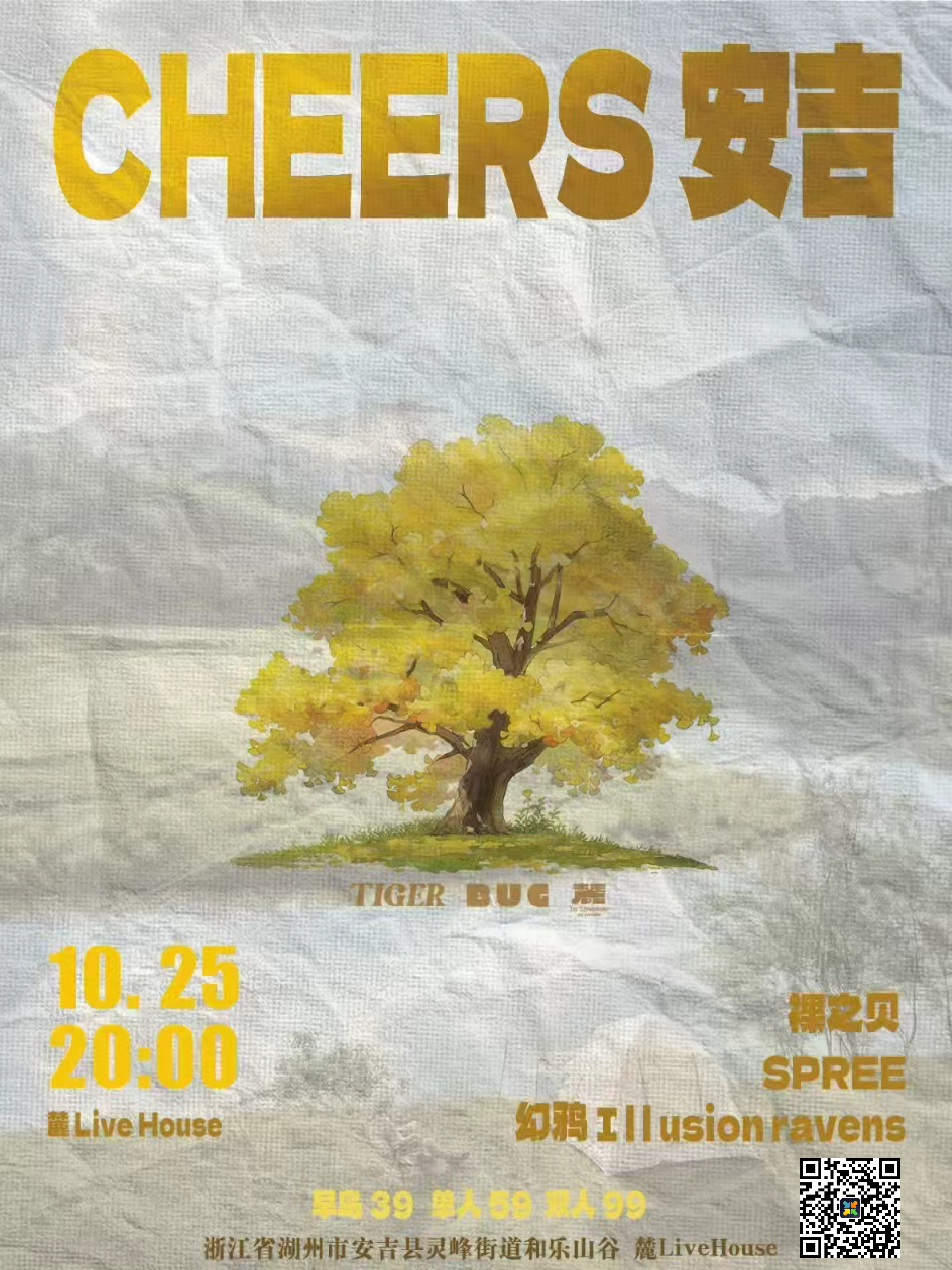 4️⃣ 10月25日,“CHEERS 安吉” —— 裸之贝、SPREE、幻鸦 /安吉麓Livehouse