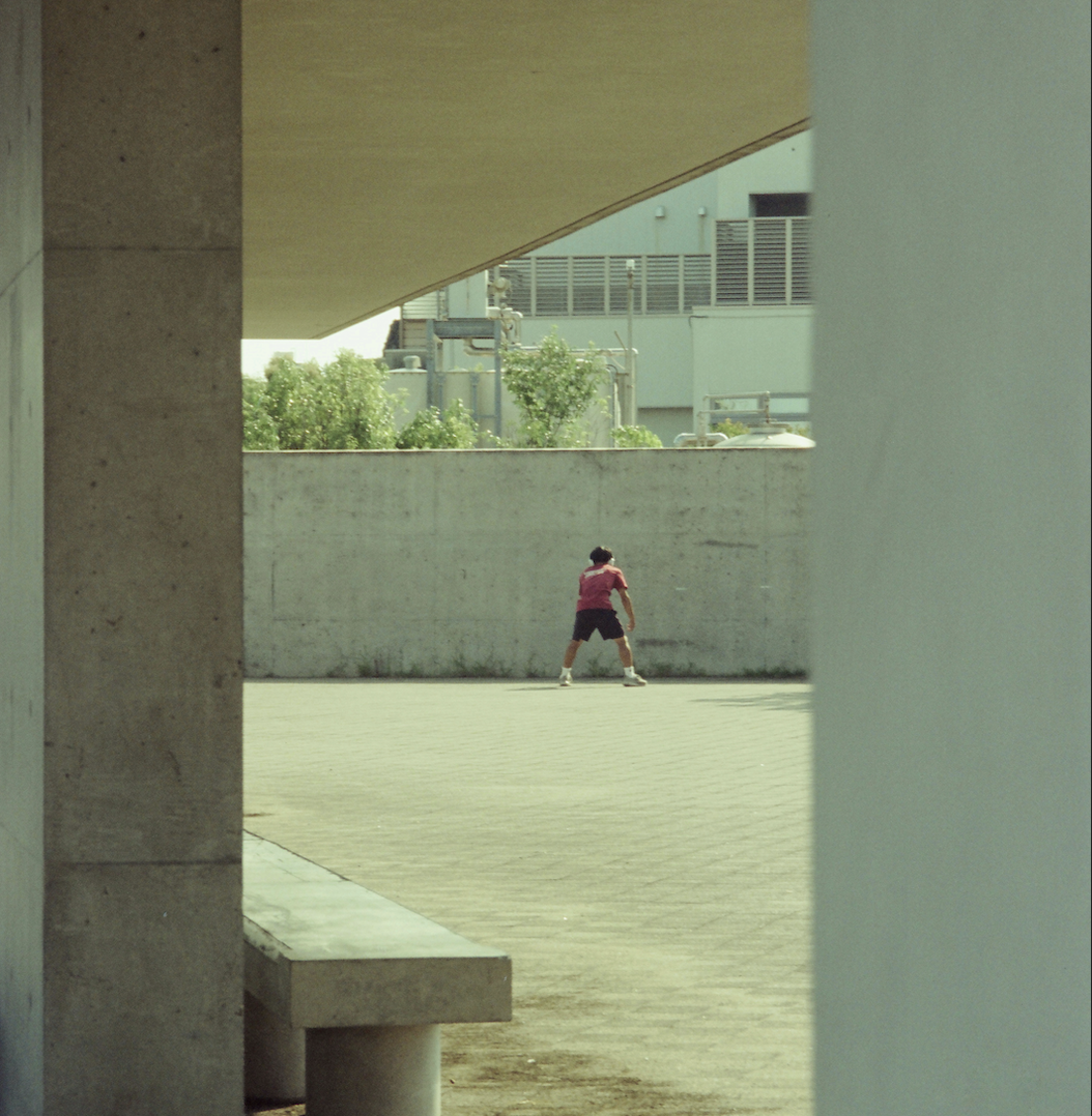 兵库美术馆旁边,看到练习接球的年轻人