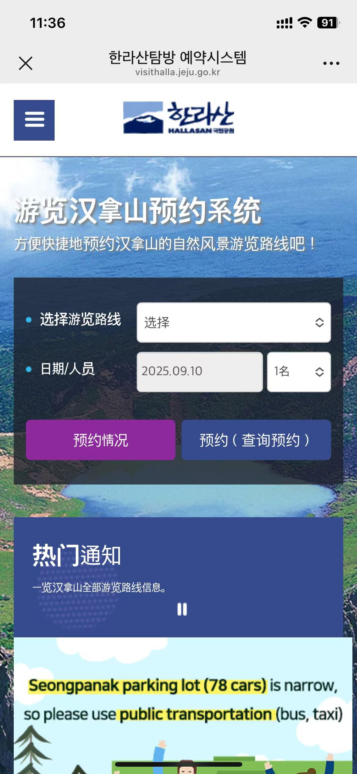 - 汉拿山徒步官网预约网址:visithalla.jeju.go.kr