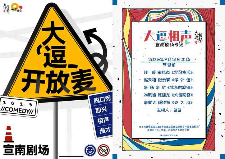 大逗相声本周六演出节目单↓!还有本周五晚大逗开放麦,欢迎来玩~