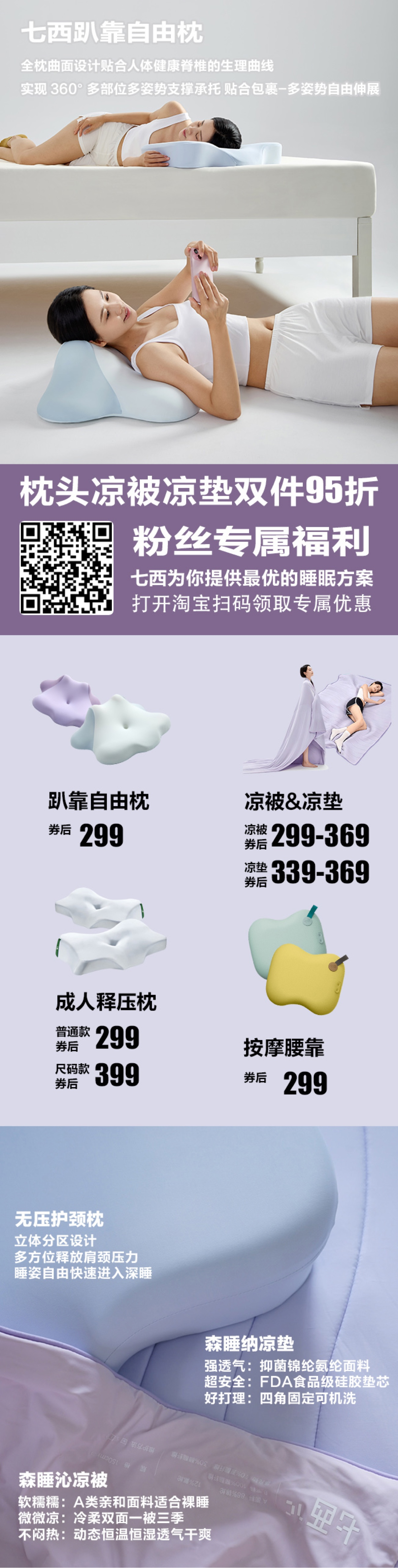 本节目推荐的七西趴靠自由枕,可以适配各种姿势,让人自由躺着靠着甚至是趴着玩手机看书,很适合喜欢葛优躺的手机党,特别是小孩老人用这个对腰椎颈椎很友好。如果喜欢推荐大家试试