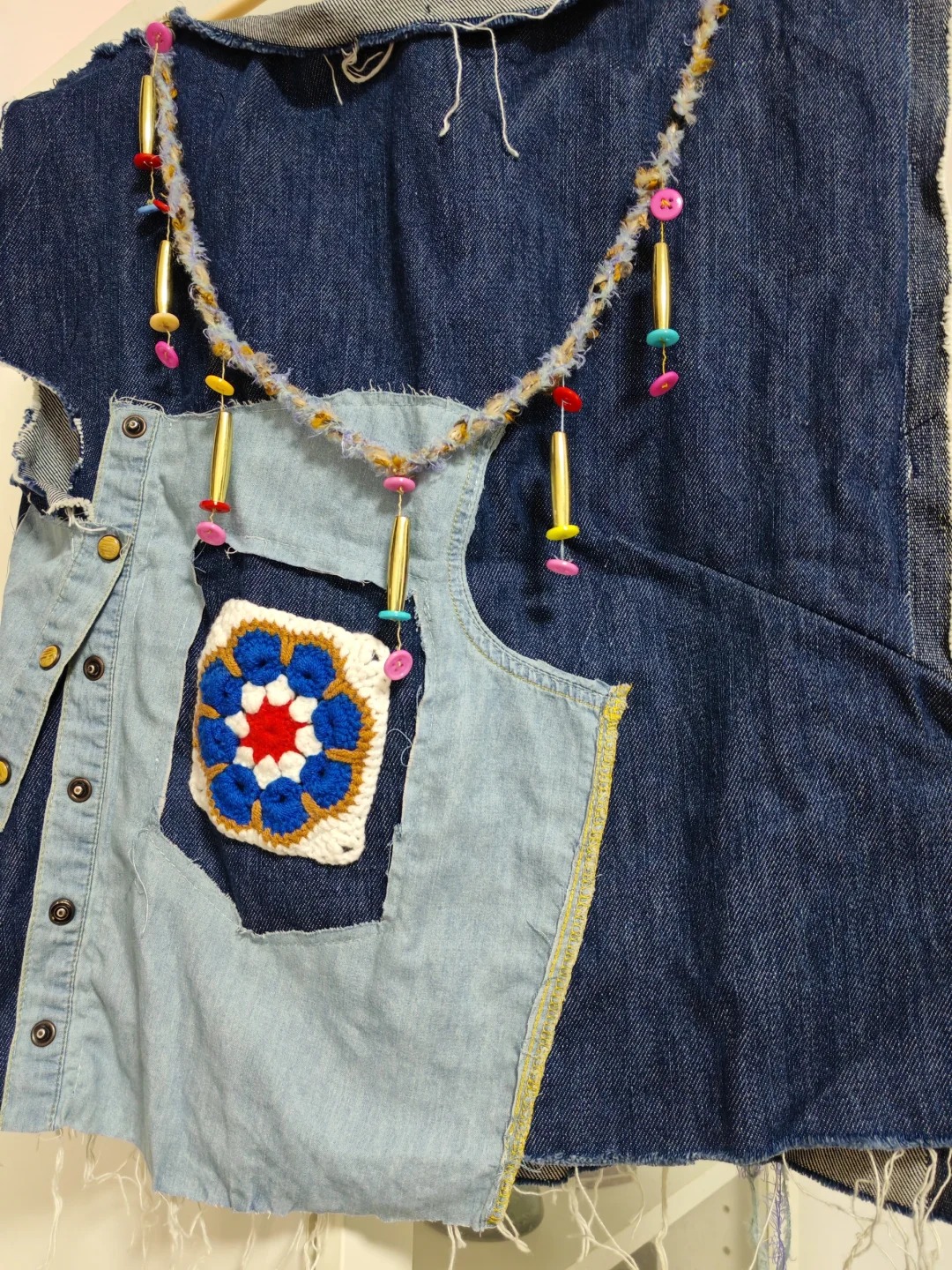 ⬆️针织牛仔:花片是在循环市集上跟别人交换而来的