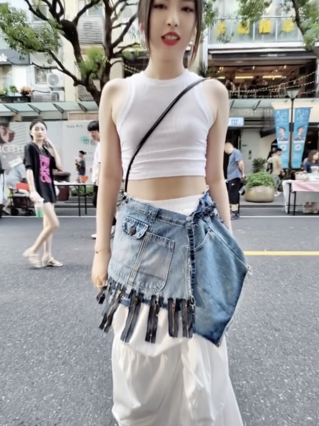 ⬆️香柚的牛仔马甲、牛仔包和牛仔裤都是Remake的