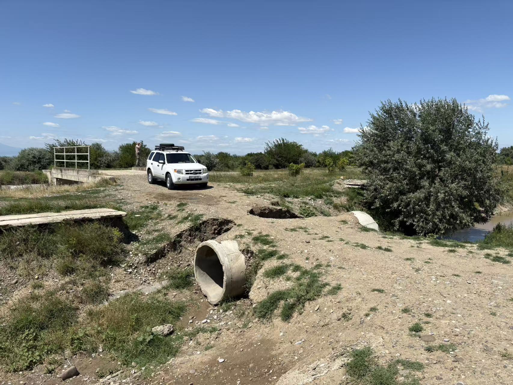 包车遭遇道路断裂,在荒郊野岭被迫开始徒步10公里