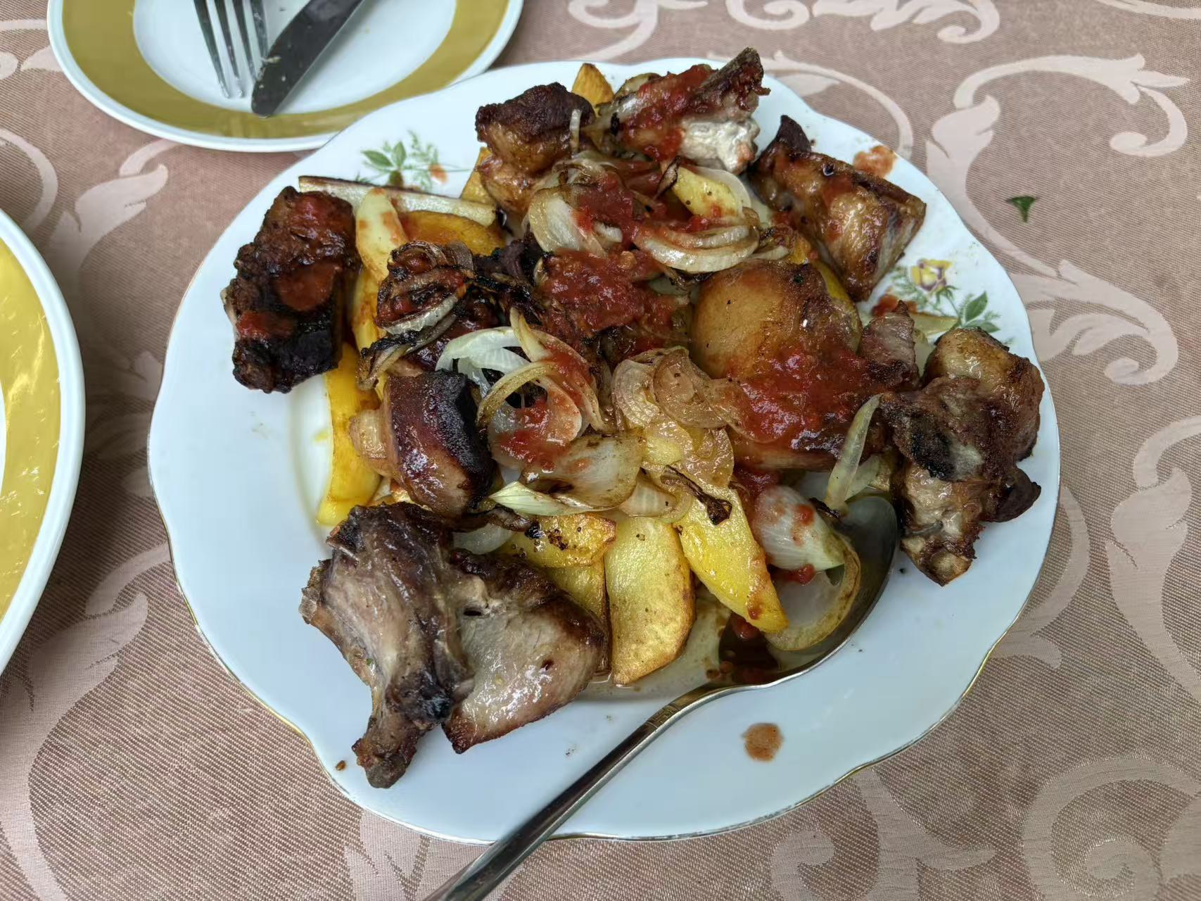 猪肉的一个菜,名字忘记了,格鲁吉亚配菜里的烤土豆都特别好吃