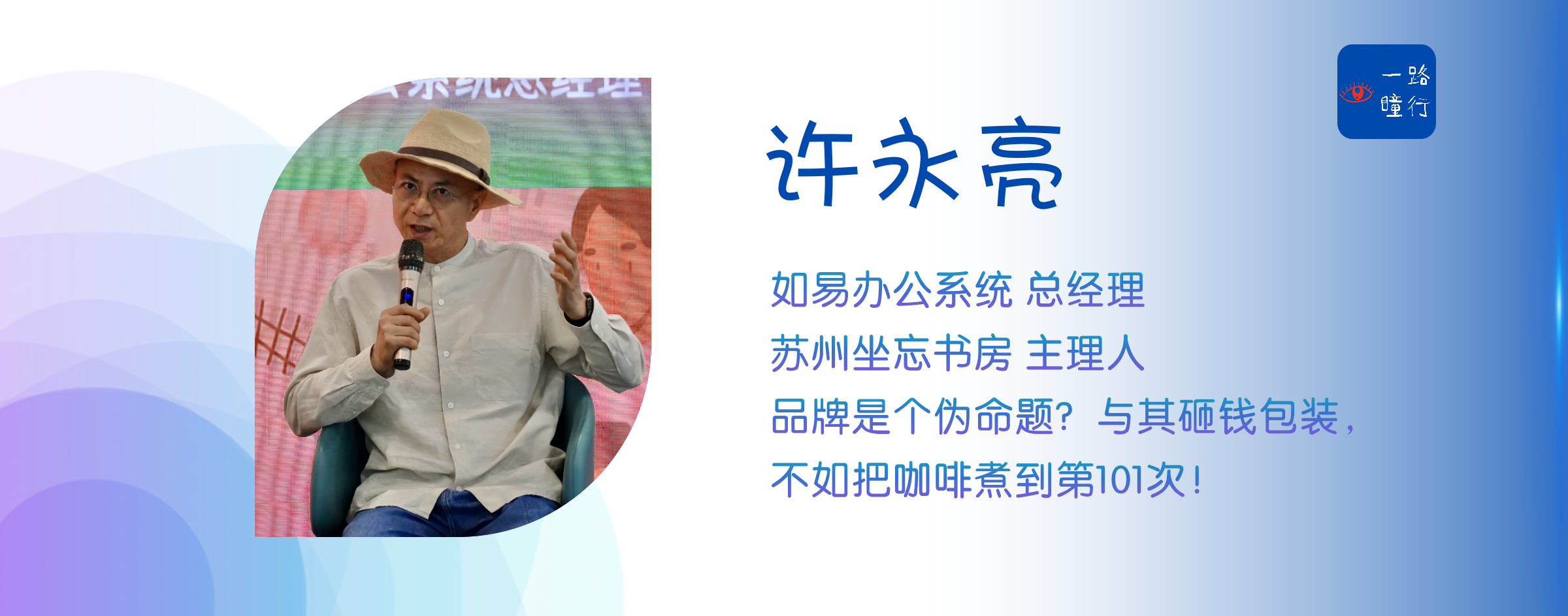 本次一路瞳行圆桌,聚焦在投资和品牌,邀请精尚慧主理人徐翔/苏州坐忘书房主理人,如易办公系统总经理——许永亮两位嘉宾。