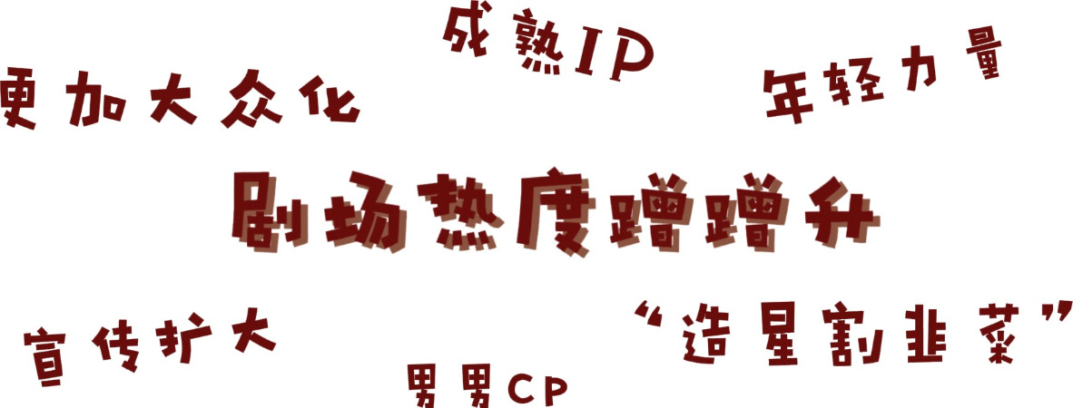 随着剧目越来越多,进入剧场变成了更加大众化的娱乐项目,像apple这样的80、90后的经济条件也可以支持他们进入剧场。从apple的视角来看,还有不少成熟IP的影响力也延伸到了衍生剧目上,比如宫崎骏的动漫。忧忧特别认可apple提出的饭圈文化,感觉有点“造星割韭菜”的意味。除此之外,还打包了不少男男cp,吸引了不少流量。小玉是觉得宣传扩大是一个主要原因,比如近几年综艺的出圈,再加上现在网络的传播,年轻力量注入到了这个行业内。