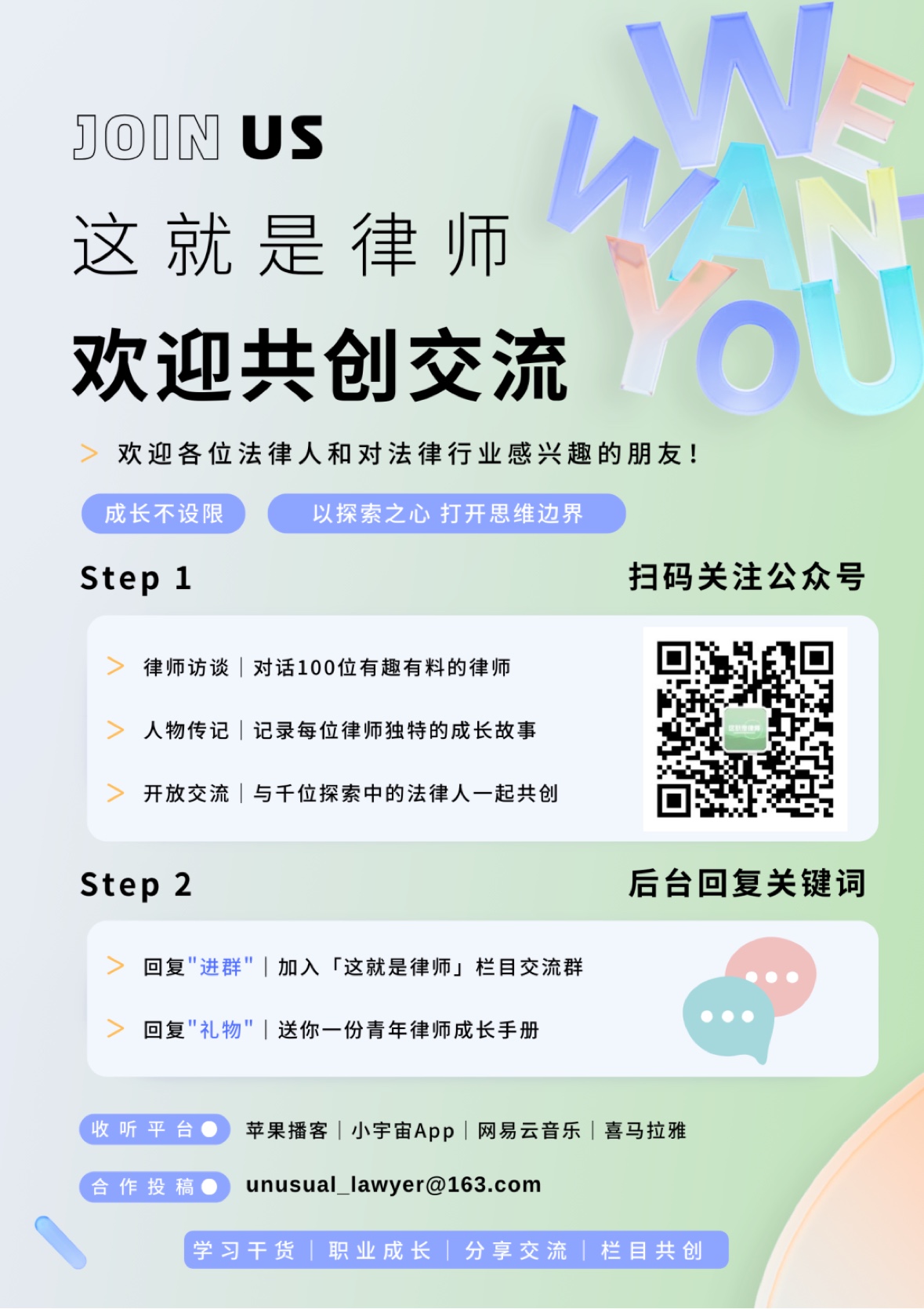 如果想要加入【这就是律师】的听友群,欢迎关注【这就是律师】公众号,后台回复“进群”,即可加入。