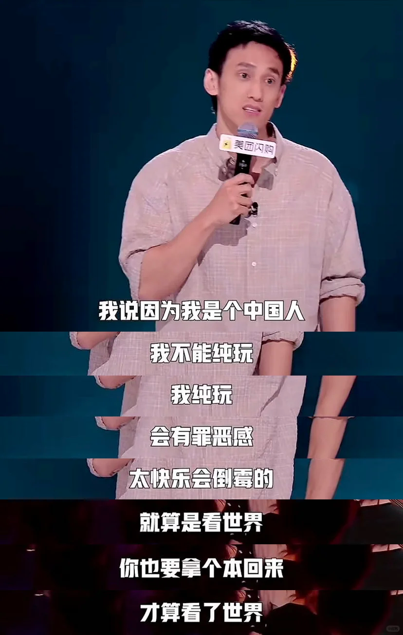 为什么有人认为休息就是浪费时间?脱口秀演员张骏说到自己出国留学时给出的理由是「我是个中国人,我不能纯玩儿。就算看世界,也得拿个本回来」怎么说?躺平也得持证上岗吗?
