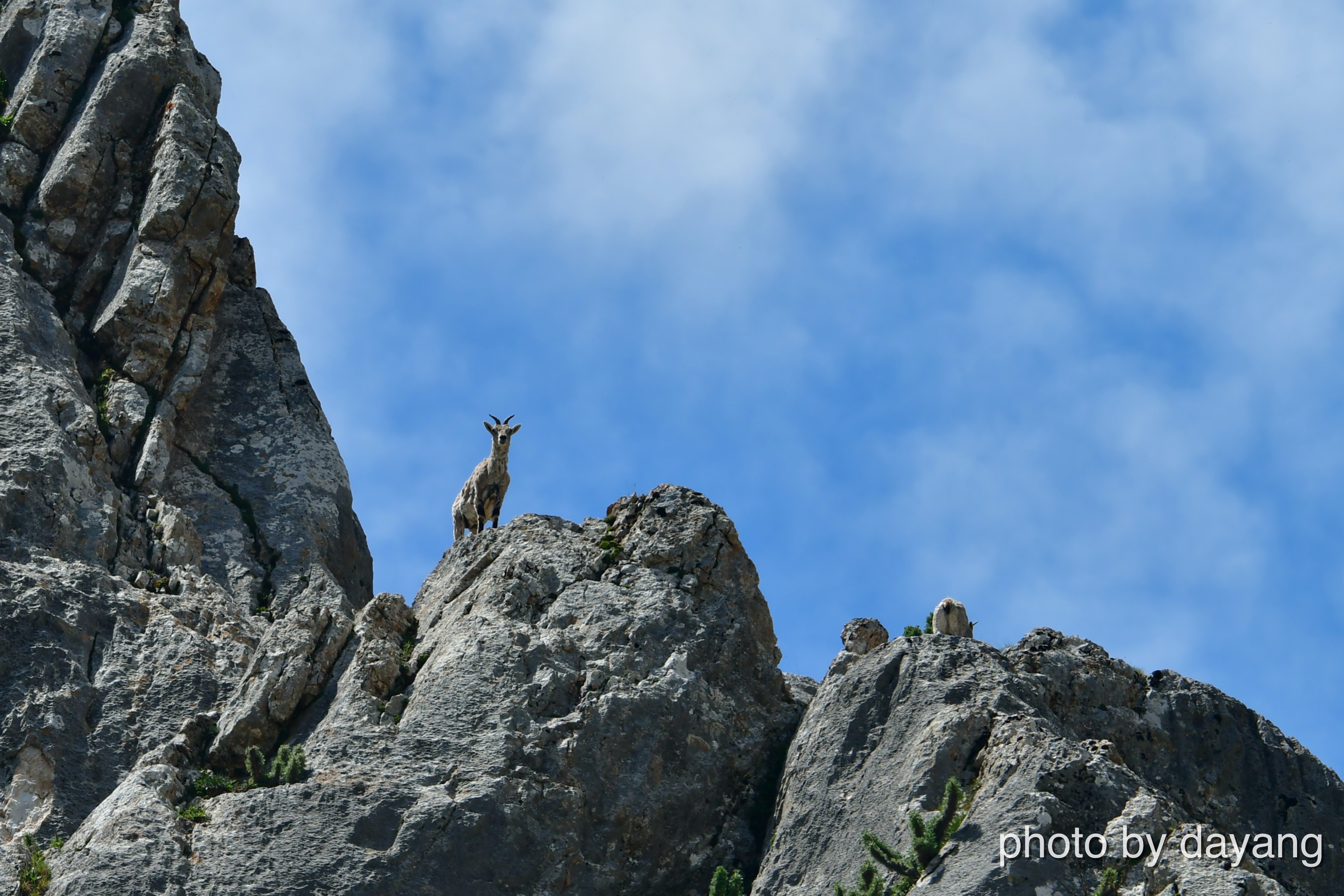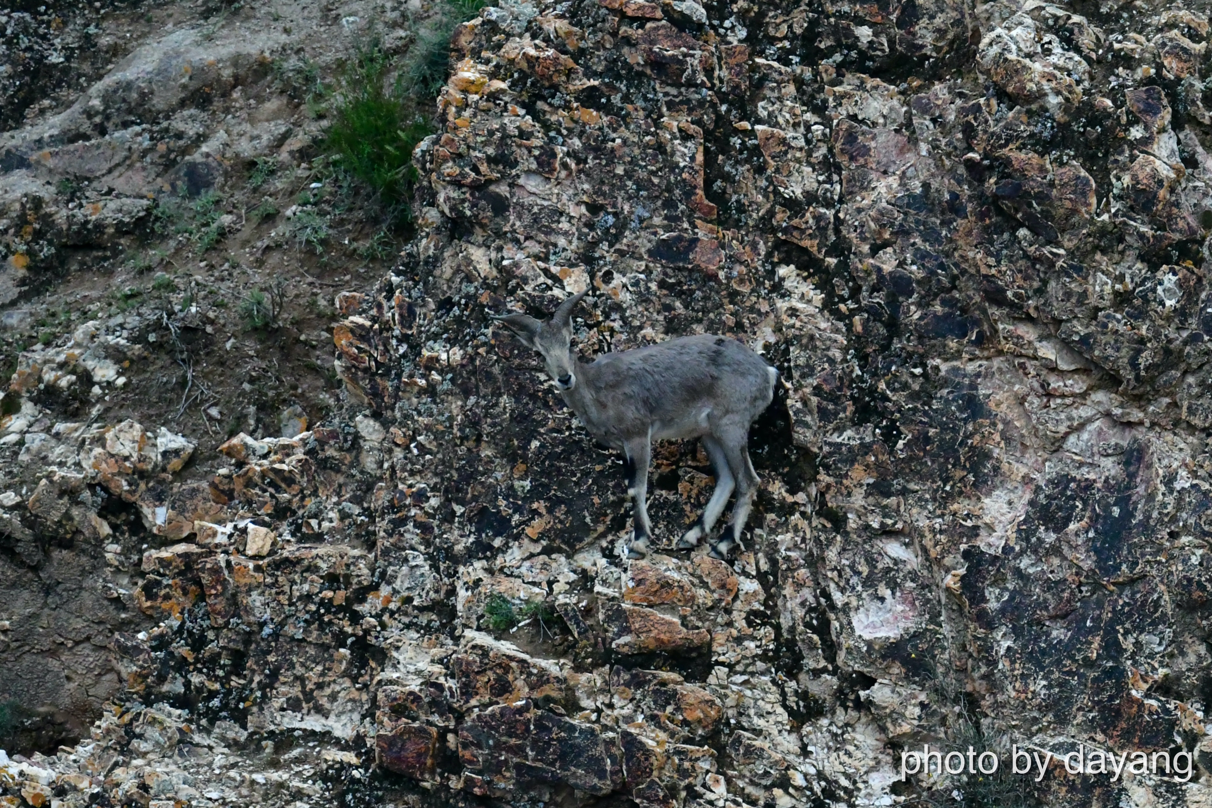 上图:岩羊在陡峭的岩壁上,2025年摄于龙羊峡