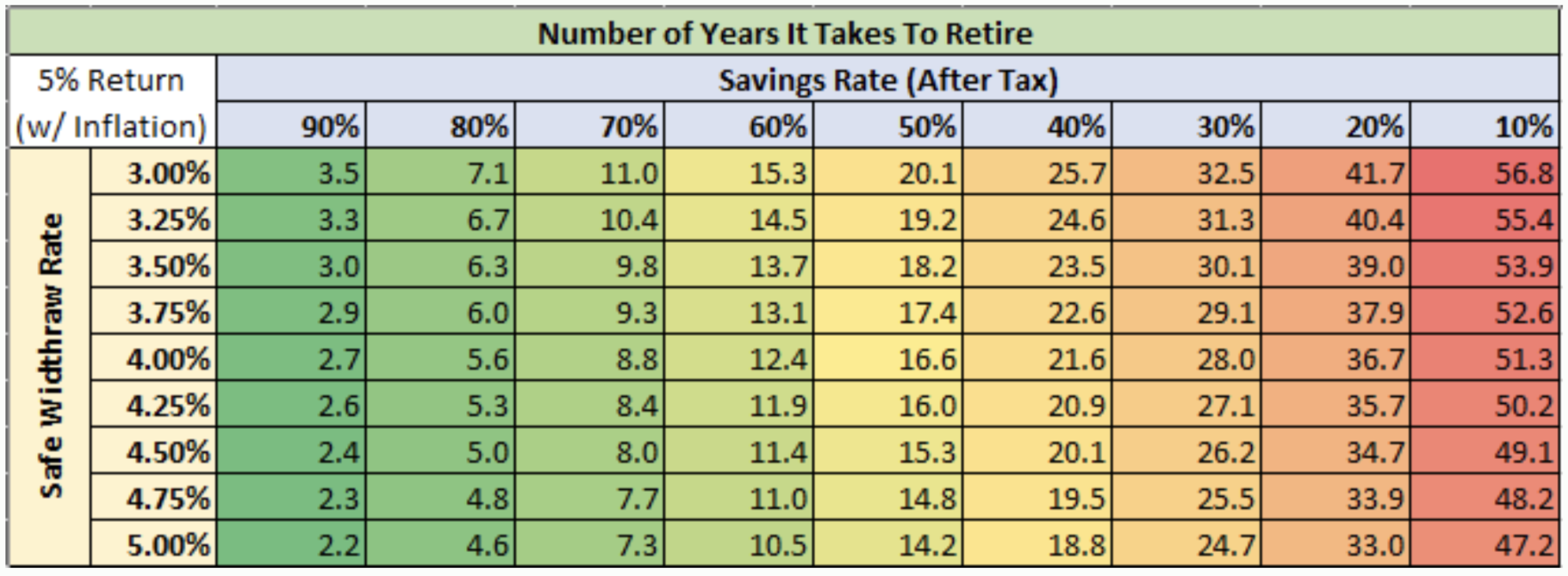 配图1:储蓄率决定你多久能退休