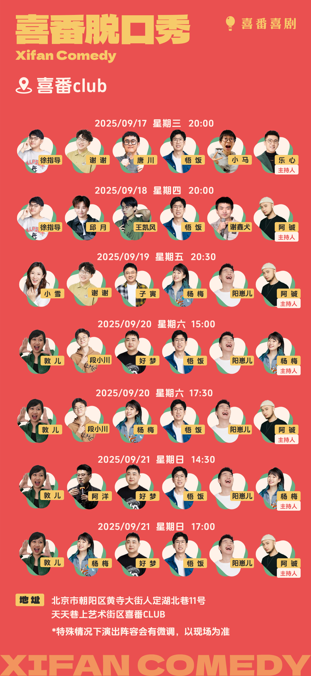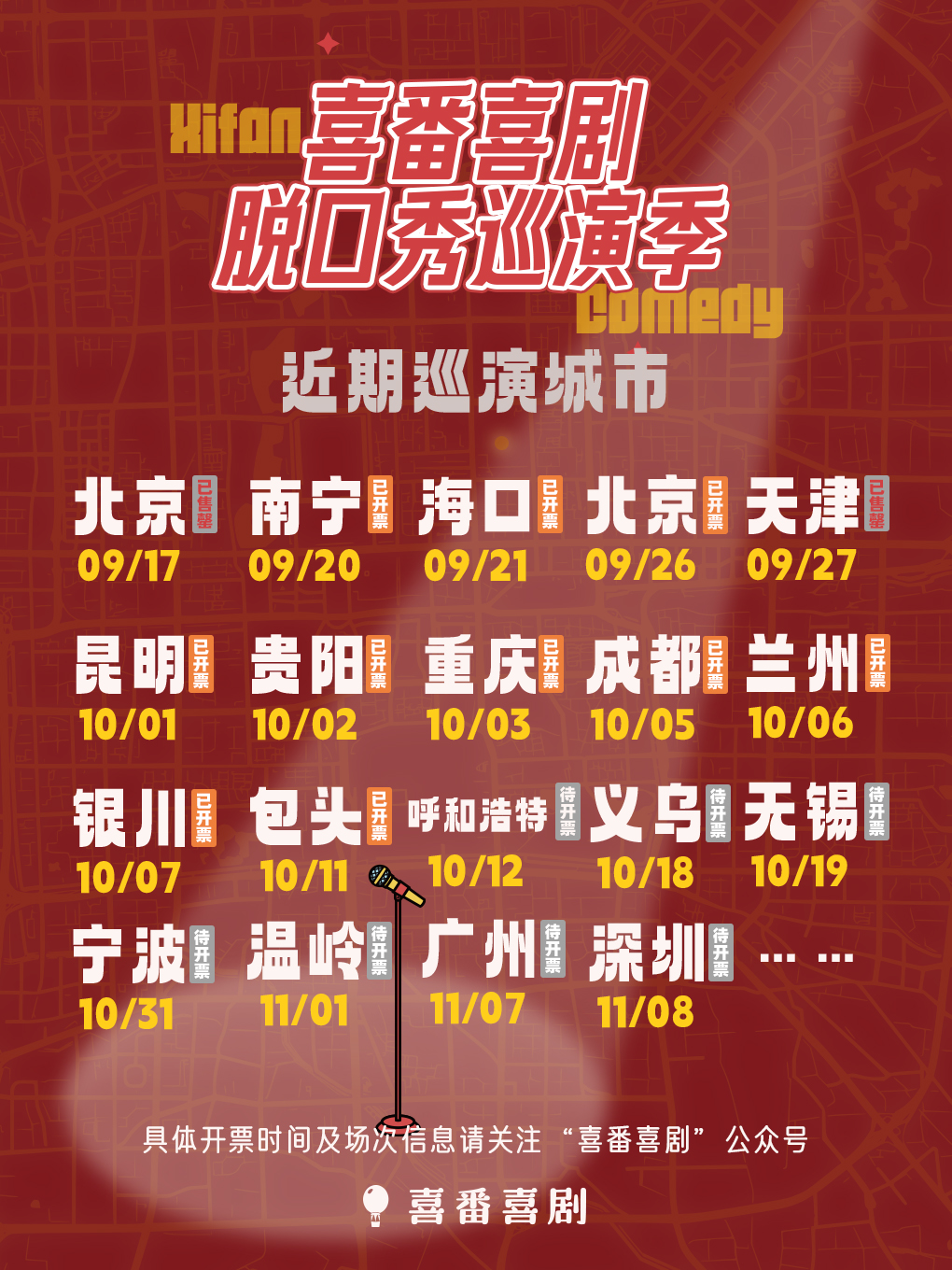 各大购票平台搜索“喜番喜剧脱口秀巡演季”即可购票