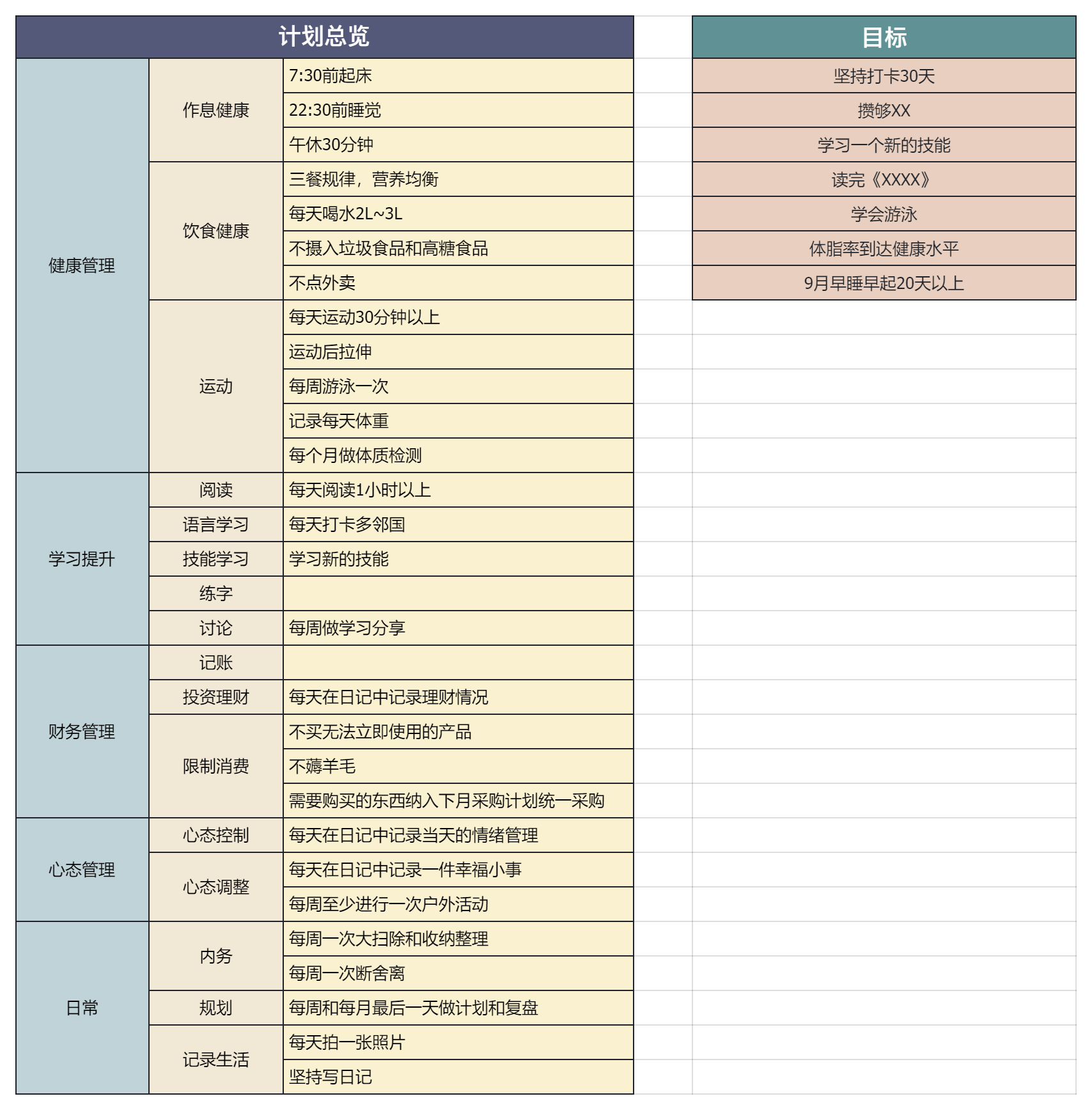 - 保持积极心态:找一个“计划搭子”互相鼓励,坦然接受不完美。