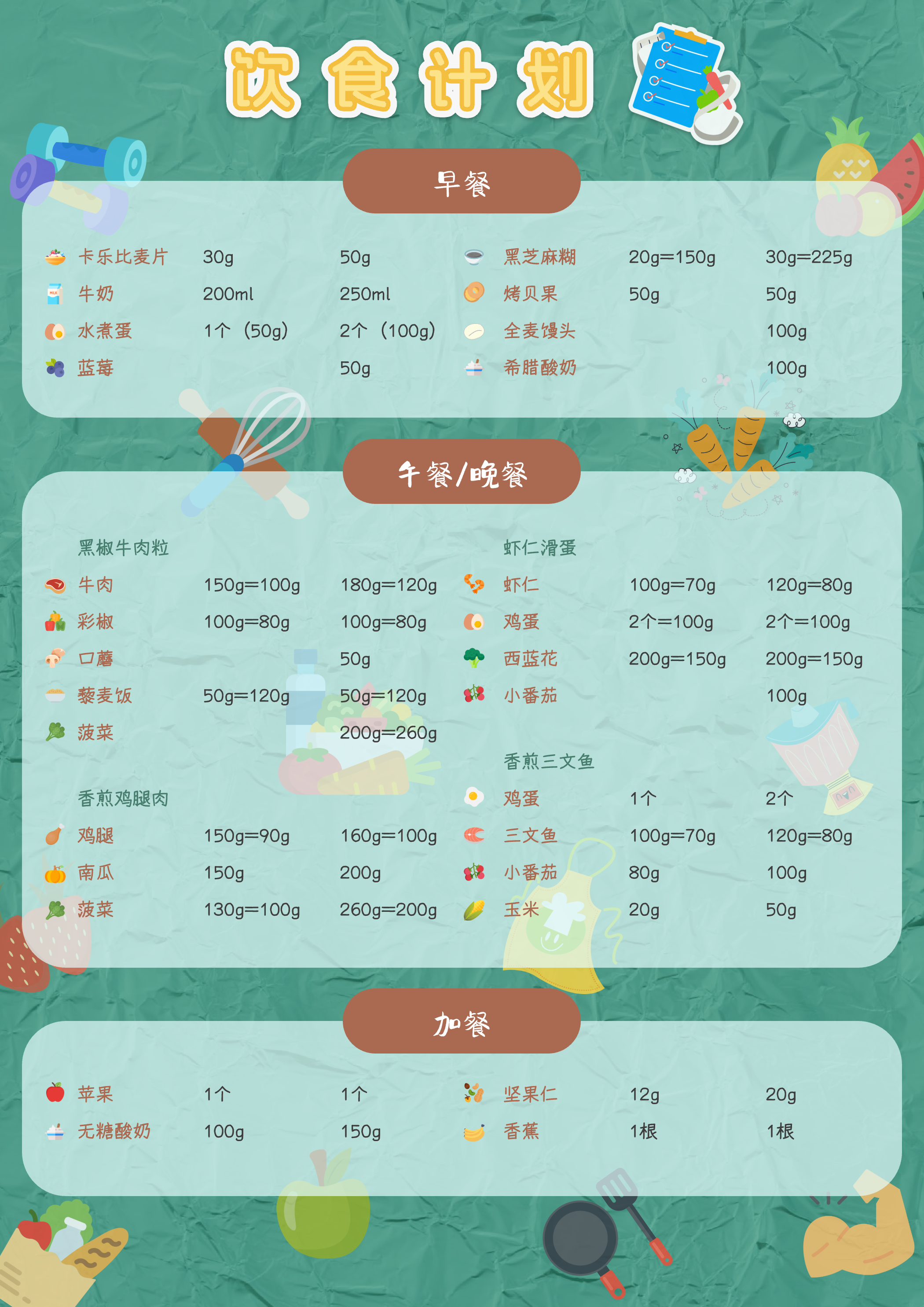 【最开始制作的饮食计划表】