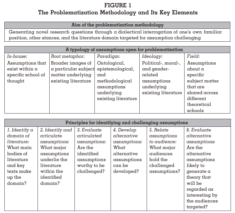 Alvesson, M., & Sandberg, J. (2011). Generating research questions through problematization. Academy of Management Review, 36(2), 247–271. doi.org