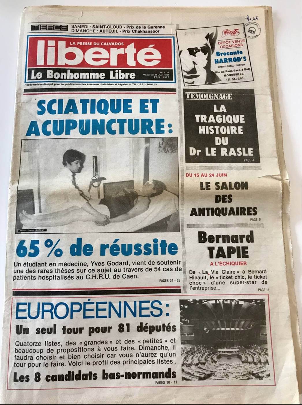 1984年6月15日,年轻的戈达尔医生因其针灸论文登上了当地周刊《自由报》(Liberté)的头版。