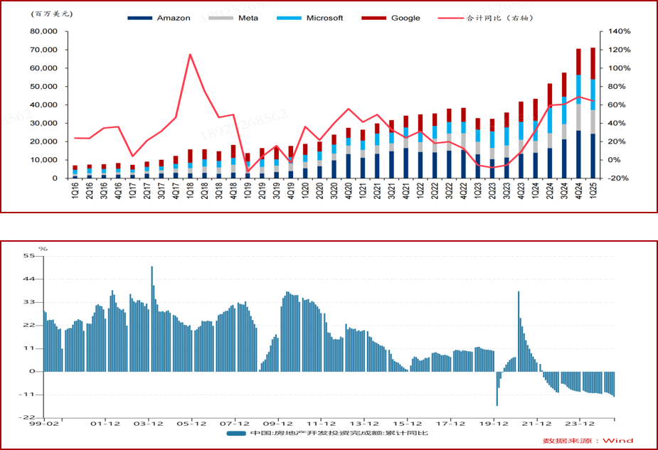 图3 美国四大互联网开支 VS 中国房地产开发投资完成额