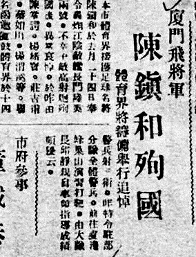 陈镇和为国捐躯讣告