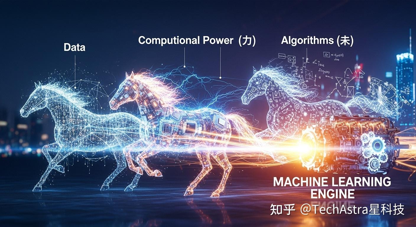 这并非因为先驱们的想法不够深刻,而是因为机器学习的潜力被当时的客观技术条件压制了数十年。直到进入21世纪,驱动它的“三驾马车”才终于齐备:
