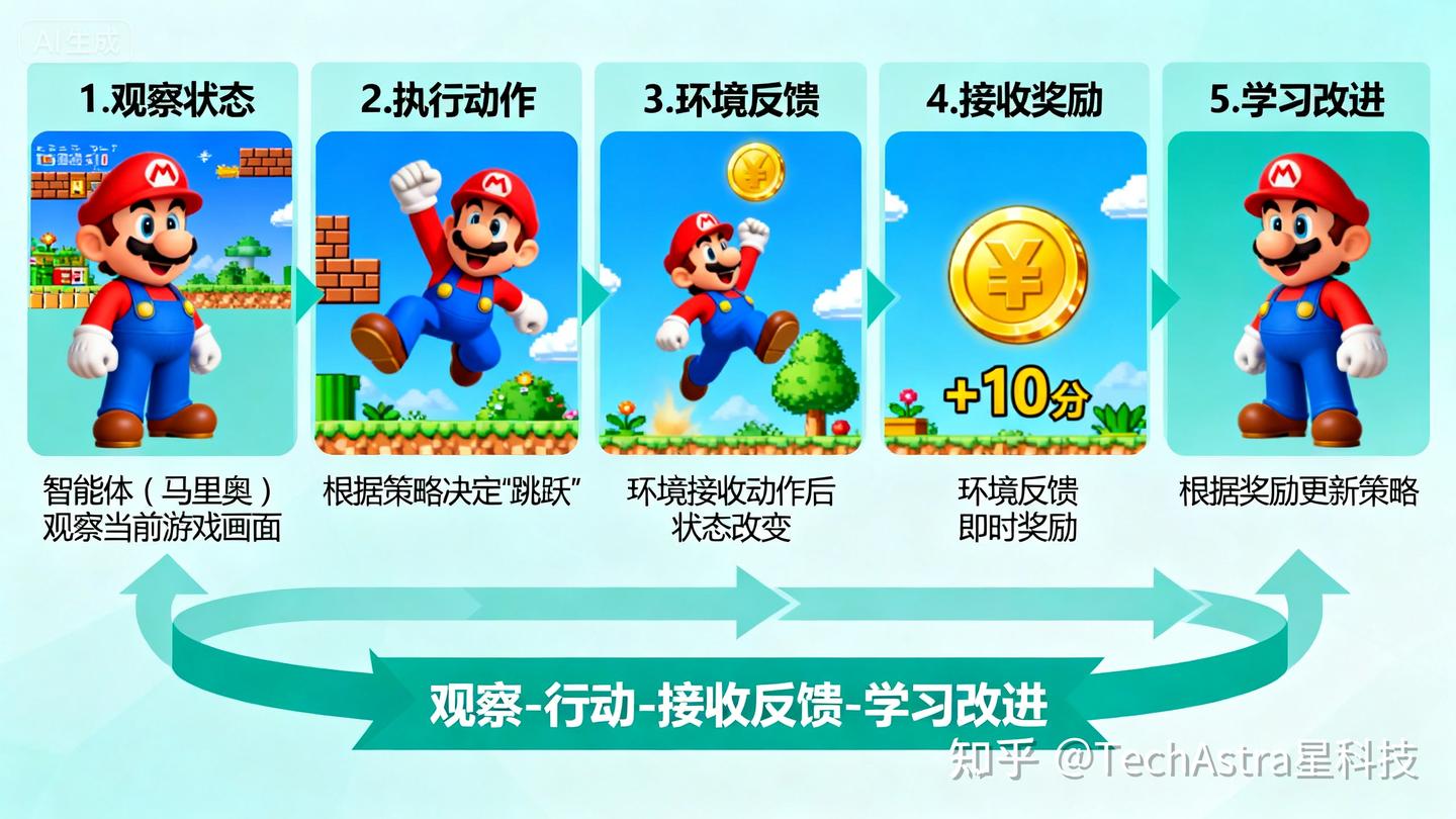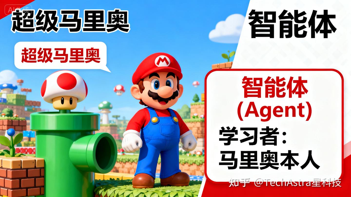 - 智能体 (Agent): 也就是学习者。在游戏中,就是马里奥本人。