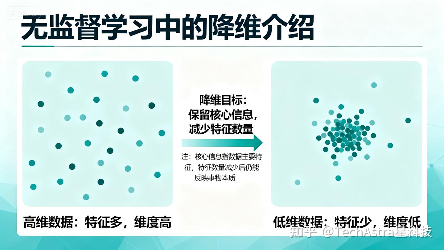 降维听起来有些抽象,但它的思想其实我们每天都在用。在机器学习中,我们描述一个事物用到的特征越多,数据的维度就越高。降维的目的,就是在尽可能保留核心信息的前提下,减少特征的数量。