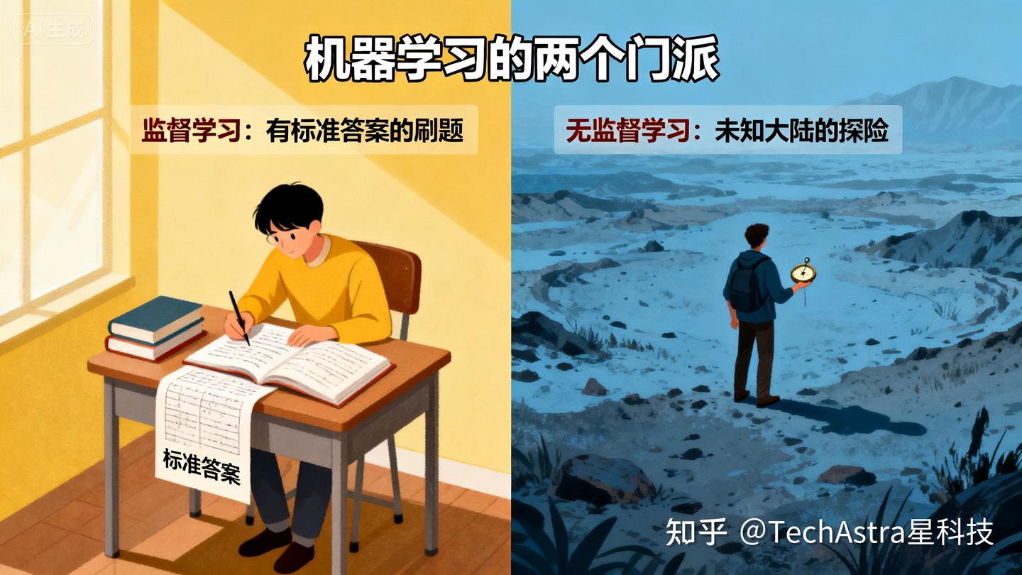 如果说监督学习是拿着标准答案刷题,那么无监督学习 (Unsupervised Learning) 就像是在一片广漠无垠、没有任何地图或向导的未知大陆上进行探索。