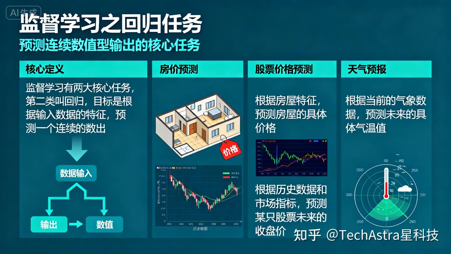 与分类不同,回归的目标是根据输入数据的特征,来计算出一个连续的、数值型的输出。