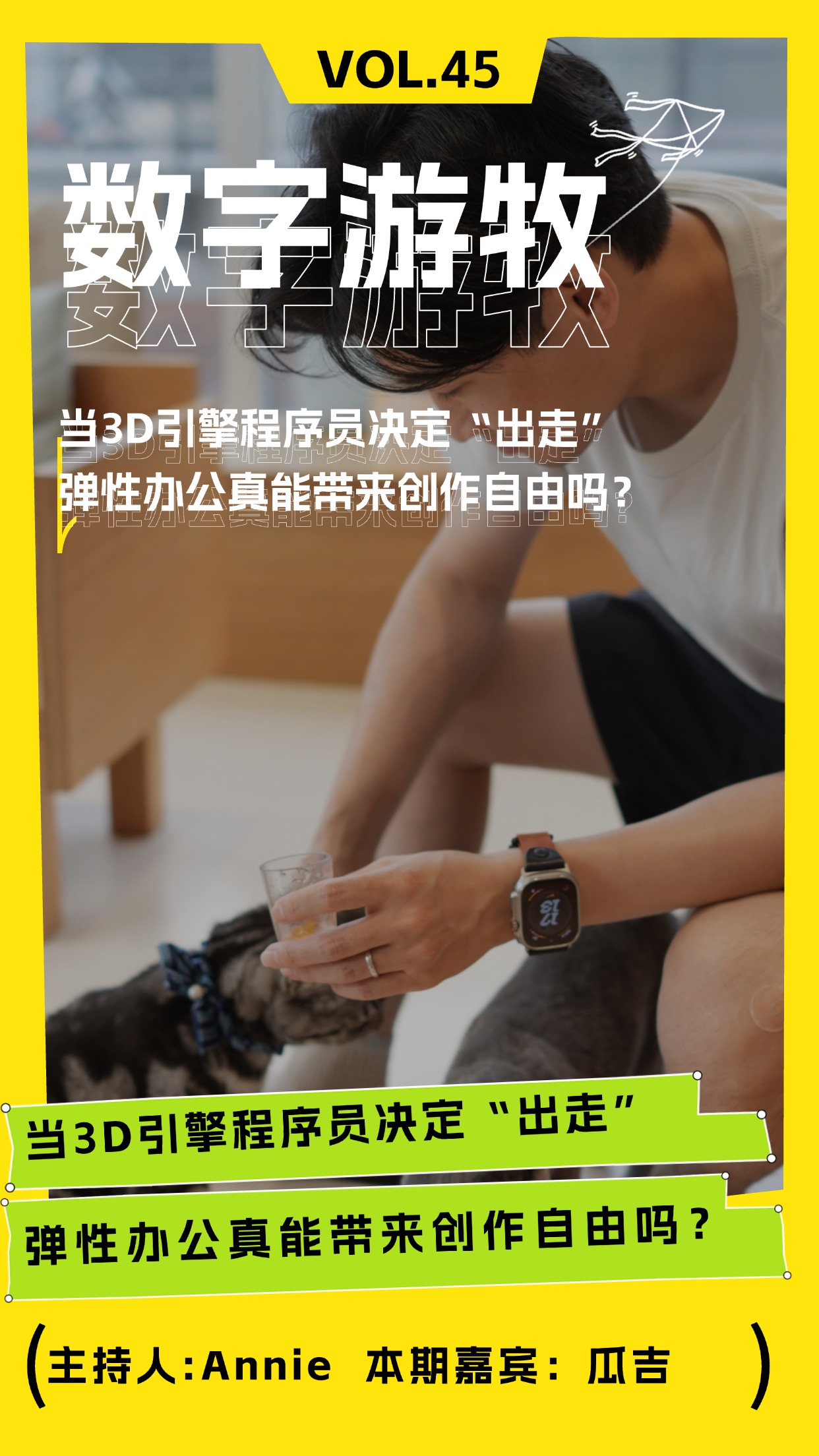 本期节目嘉宾瓜吉,一位专攻3D图形引擎的程序员,在顶尖科技公司参与推动计算机视觉与虚拟边界的关键项目。如今,他选择拥抱“3+2弹性办公”模式,实现半远程工作,并持续开发自己的独立游戏。