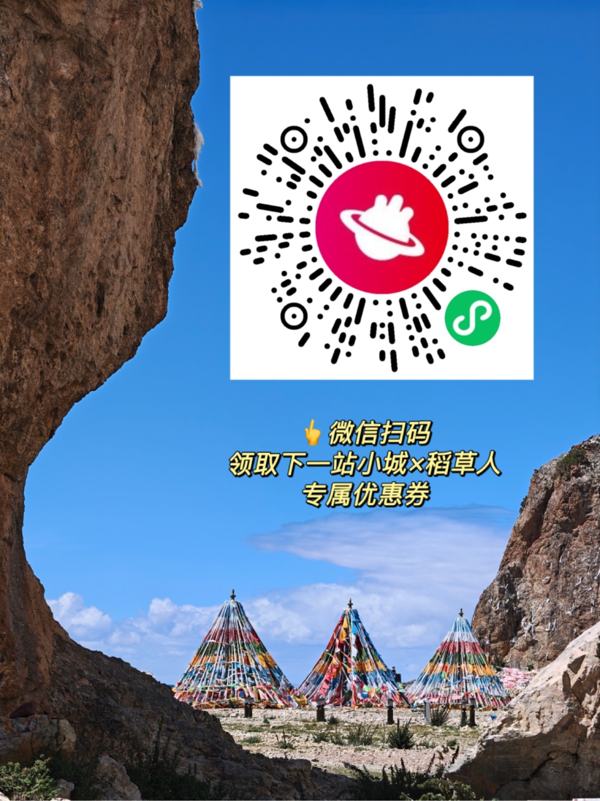 下一站小城为大家向稻草人争取到了【西藏线路专属优惠】,点击链接(需微信打开)或通过微信扫描下方二维码,即可领取下一站小城专属优惠券,特殊优惠福利先到先得!