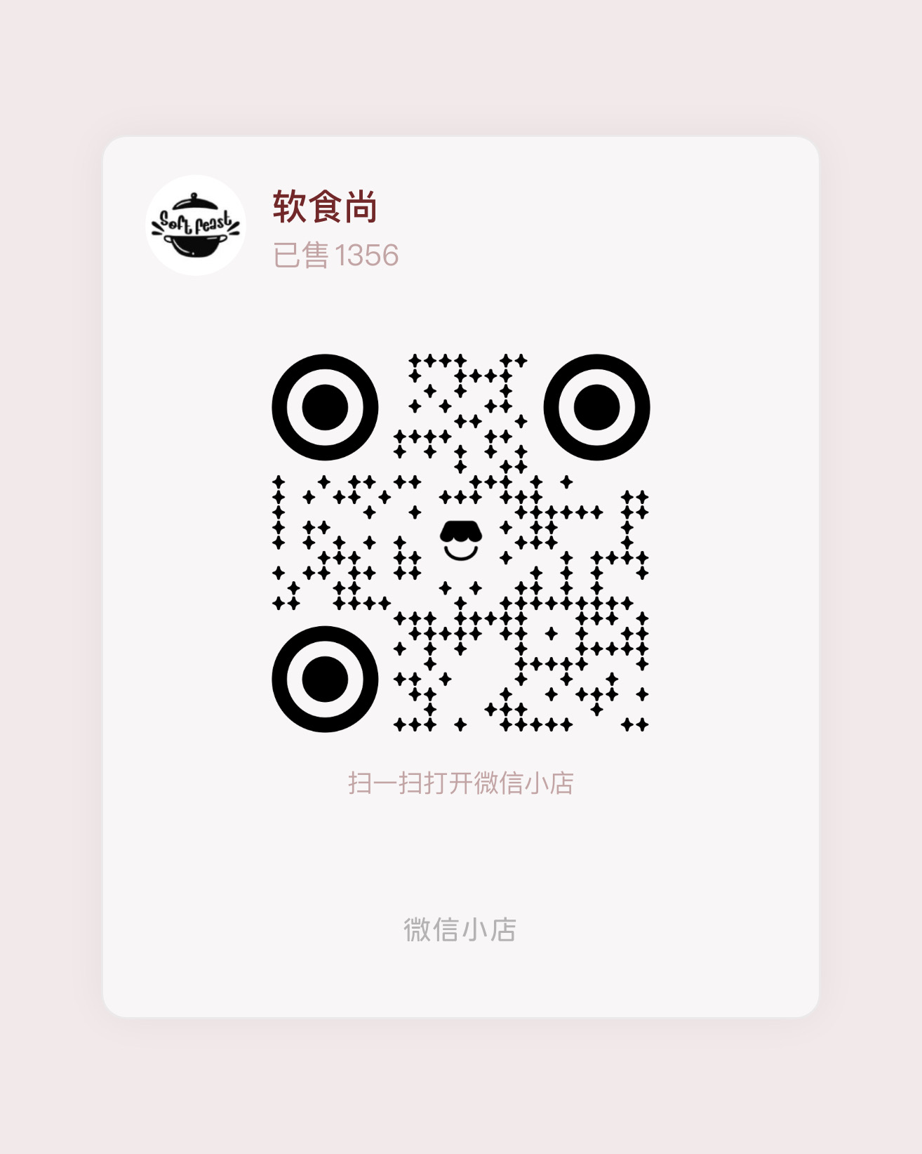 「软食尚」新品牛肉丁已经上线售卖,欢迎大家扫描下方二维码或添加服务号“软食尚SoftFeast”进店选购,预售优惠券“满300-30”截止9月22日晚24点前有效,新品上线优惠券“满300-20”只在一个月内有效(10月23日零点之前),我们的产品不参与任何购物节,所以想下单的朋友们可以冲了,减盐新款,更健康,更多搭配,更多美味。